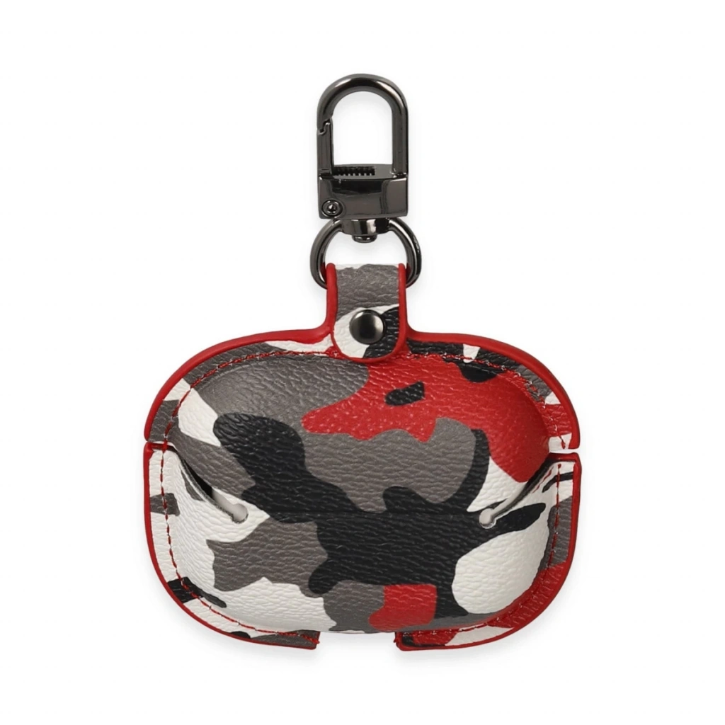 Airpods 3 (3.nesil) Çanta Kamuflaj Deri Kılıf - Kırmızı