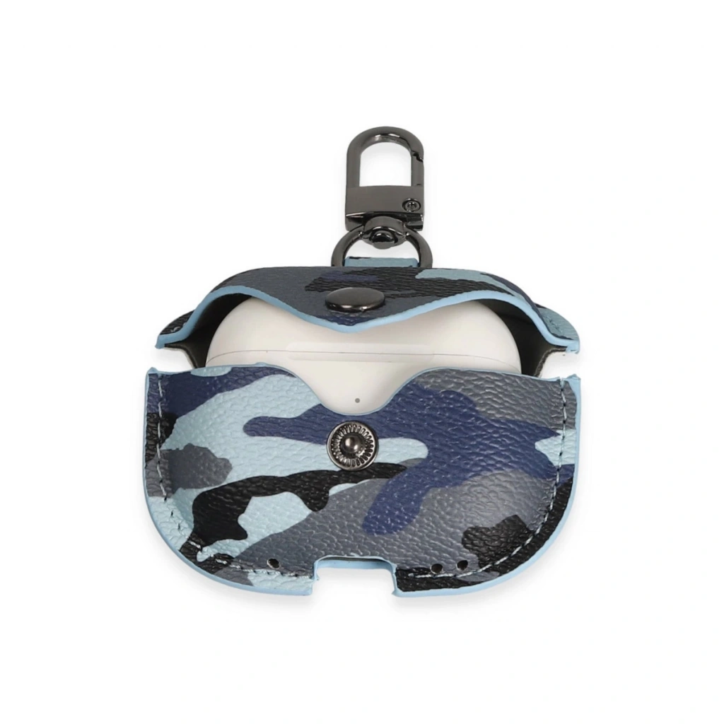Airpods 3 (3.nesil) Çanta Kamuflaj Deri Kılıf - Mavi