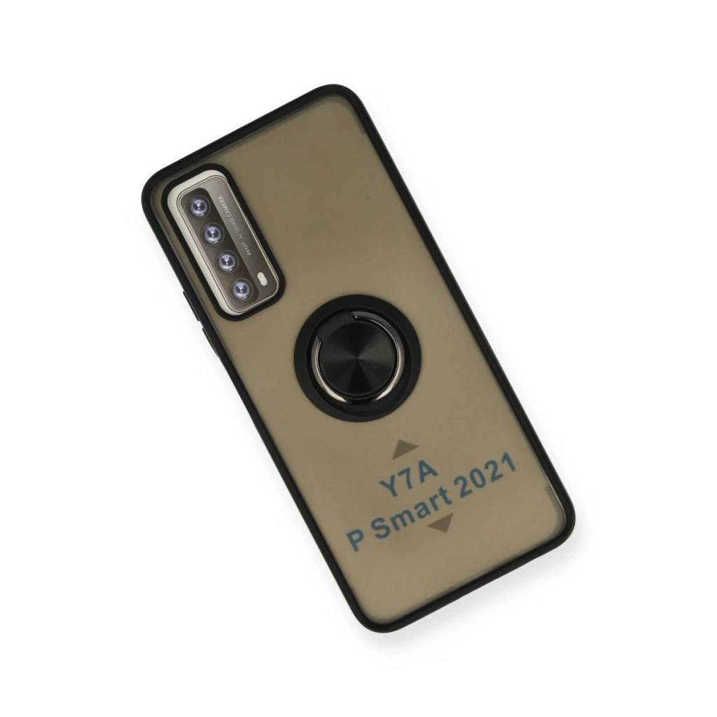 Huawei P Smart 2021 Kılıf Montreal Yüzüklü Silikon Kapak - Siyah