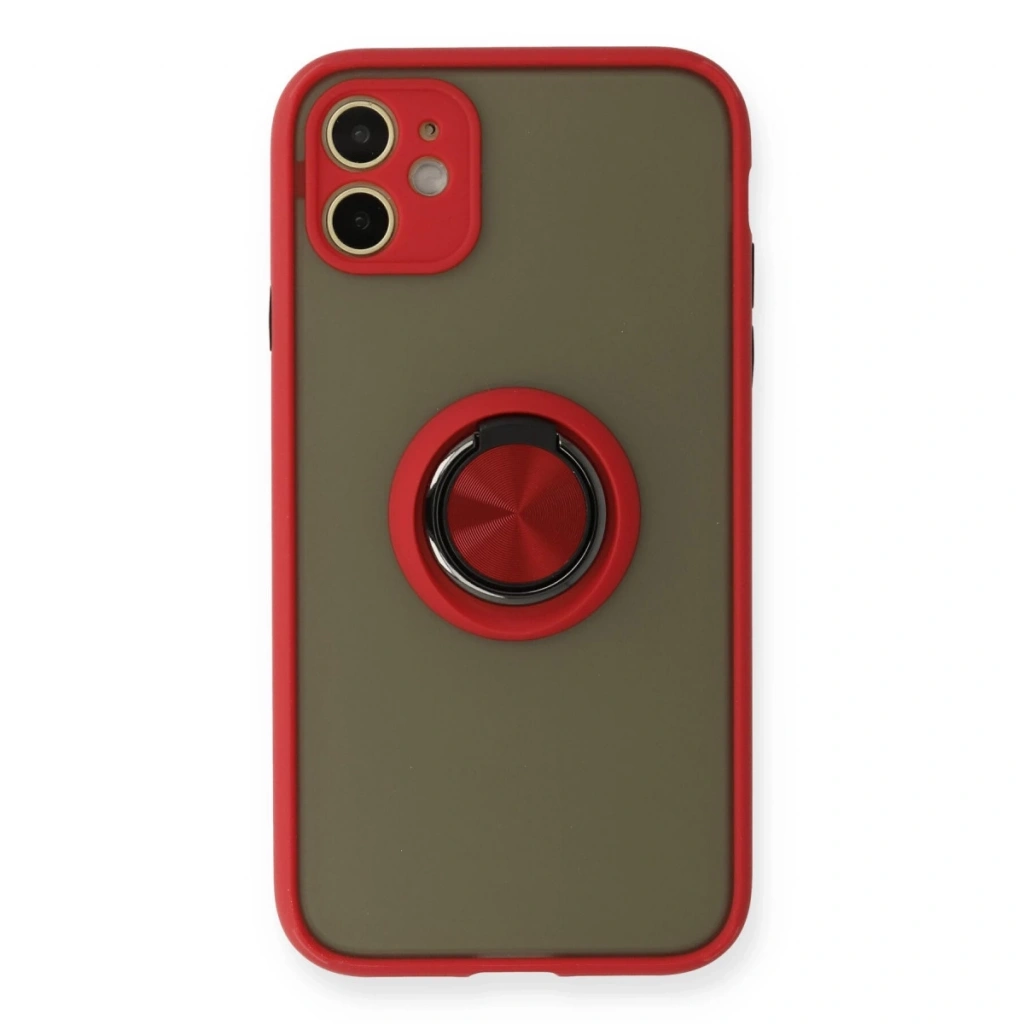 İphone 11 Kılıf Montreal Yüzüklü Silikon Kapak - Kırmızı