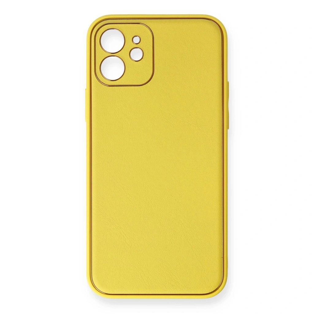 İphone 12 Kılıf Coco Deri Silikon Kapak - Sarı