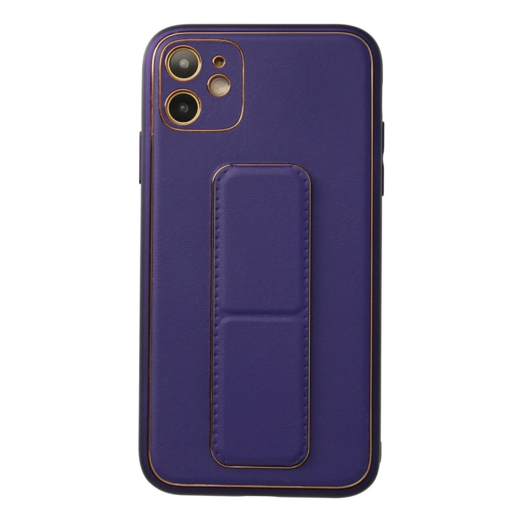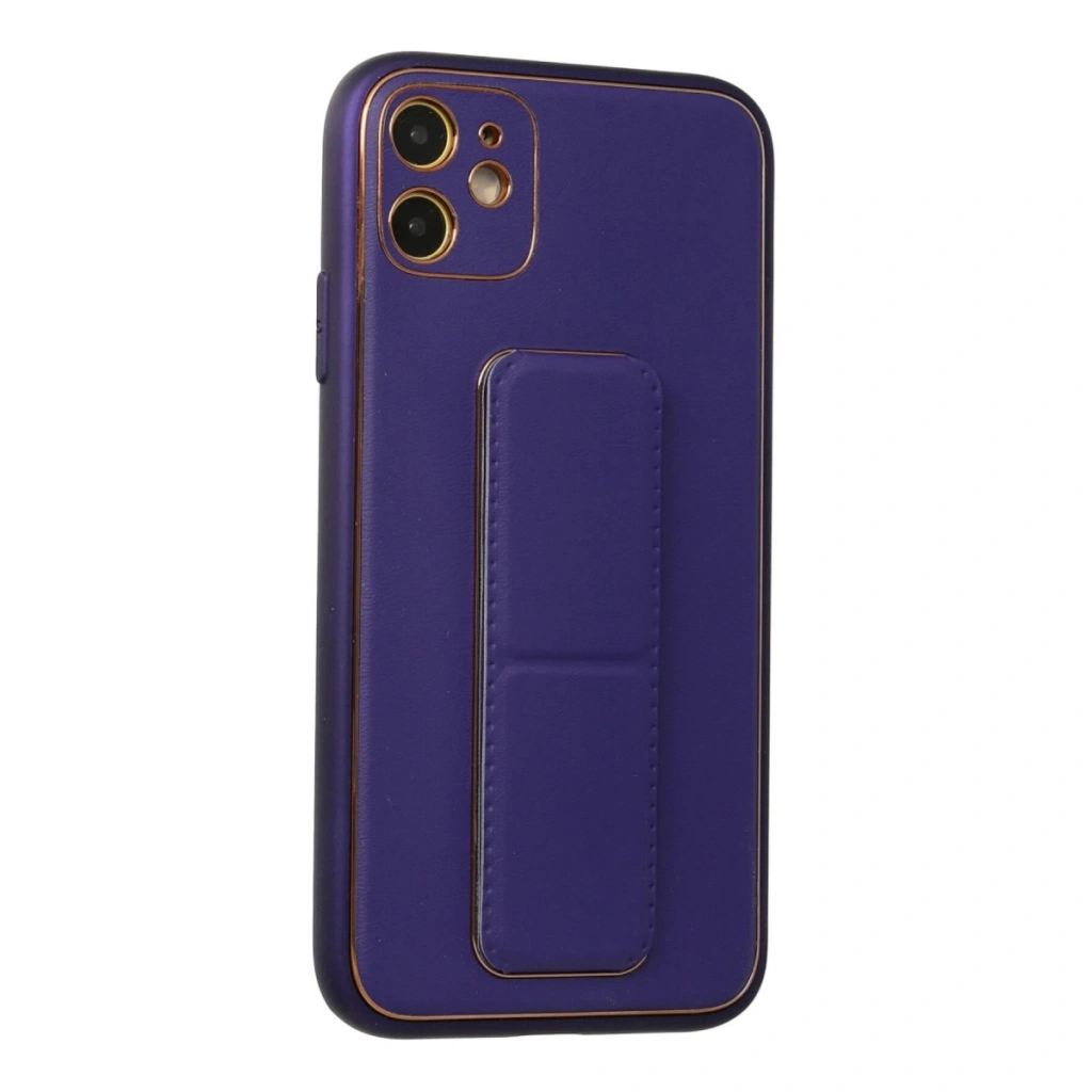 İphone 12 Kılıf Coco Deri Standlı Kapak - Mor