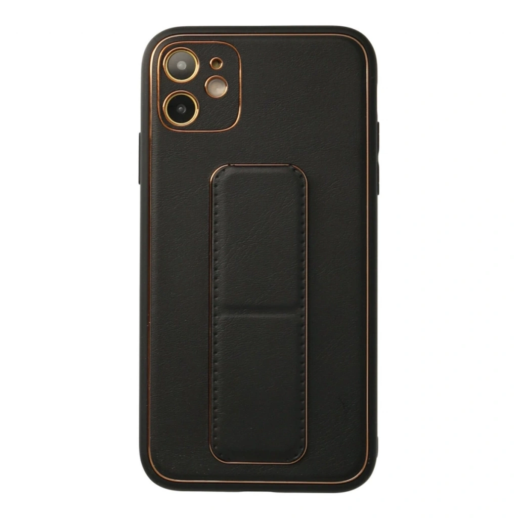 İphone 12 Kılıf Coco Deri Standlı Kapak - Siyah