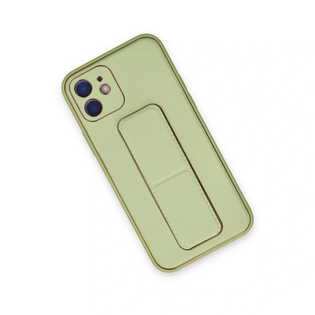 İphone 12 Kılıf Coco Deri Standlı Kapak - Su Yeşili
