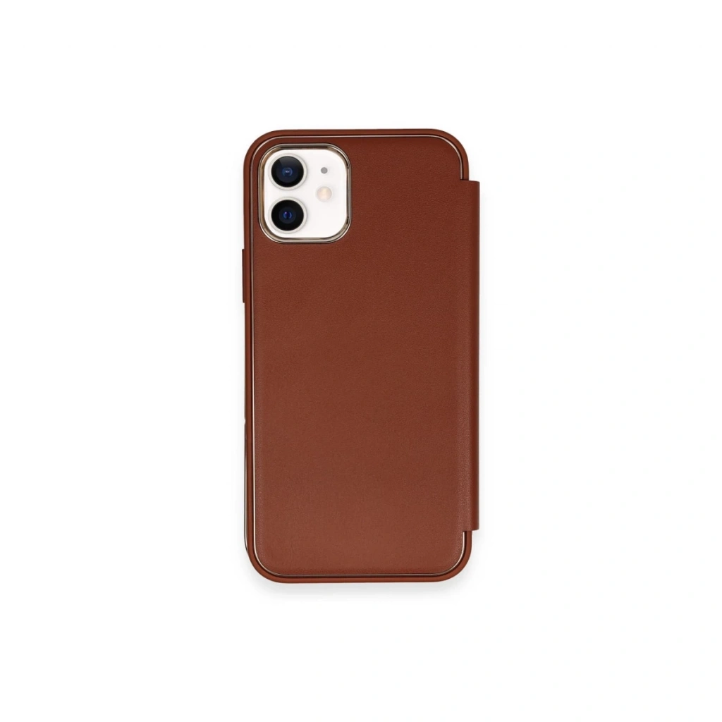İphone 12 Kılıf Dolpin Kapaklı - Kahverengi