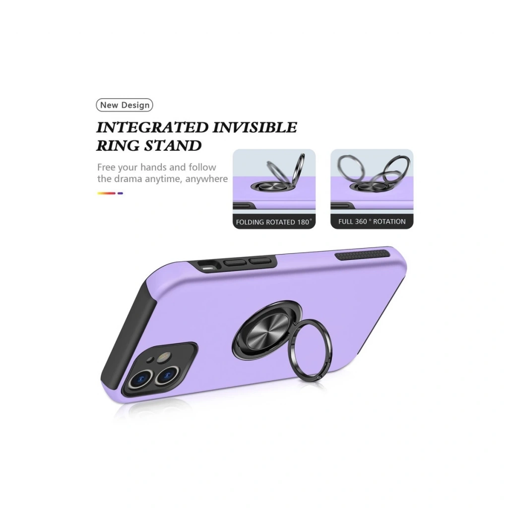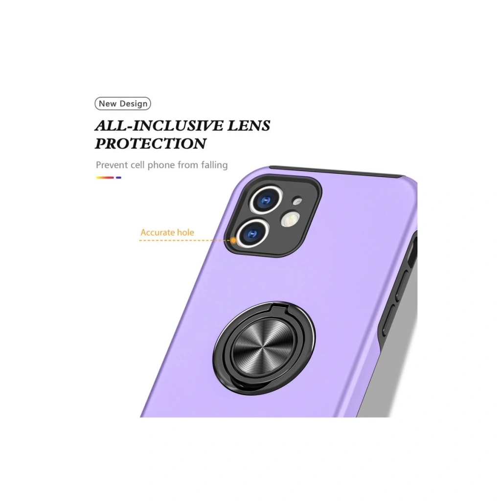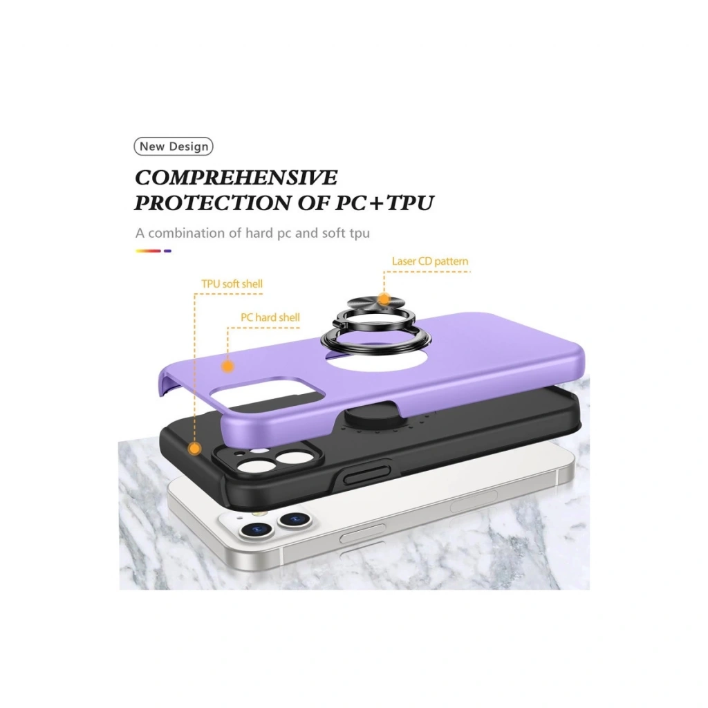 İphone 12 Kılıf Elit Yüzüklü Kapak - Mor
