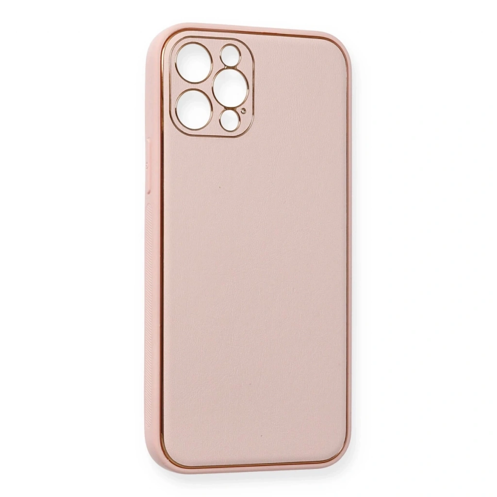 İphone 12 Pro Kılıf Coco Deri Silikon Kapak - Pembe