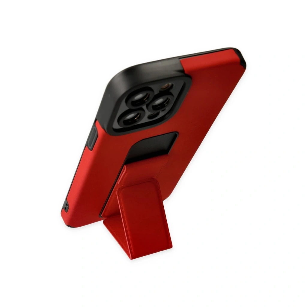 İphone 12 Pro Max Kılıf Mega Standlı Silikon - Kırmızı