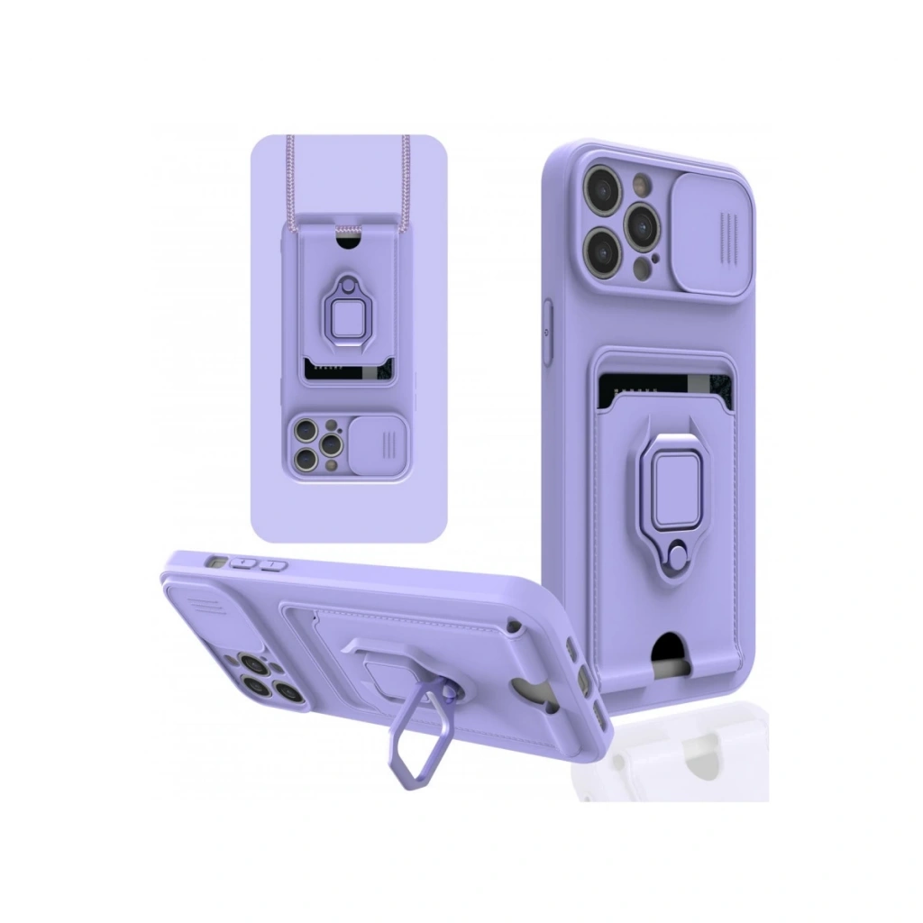 İphone 12 Pro Max Kılıf Zuma Kartvizitli Yüzüklü Silikon - Lila