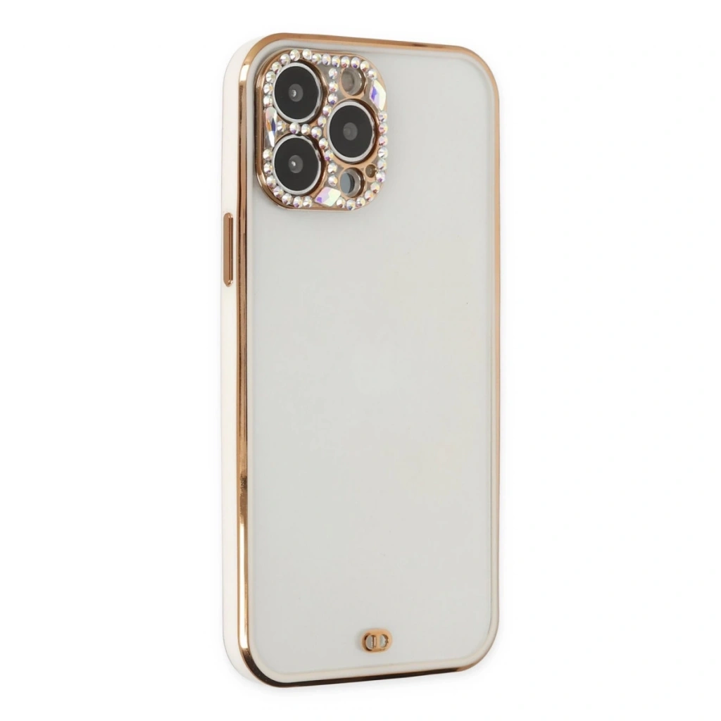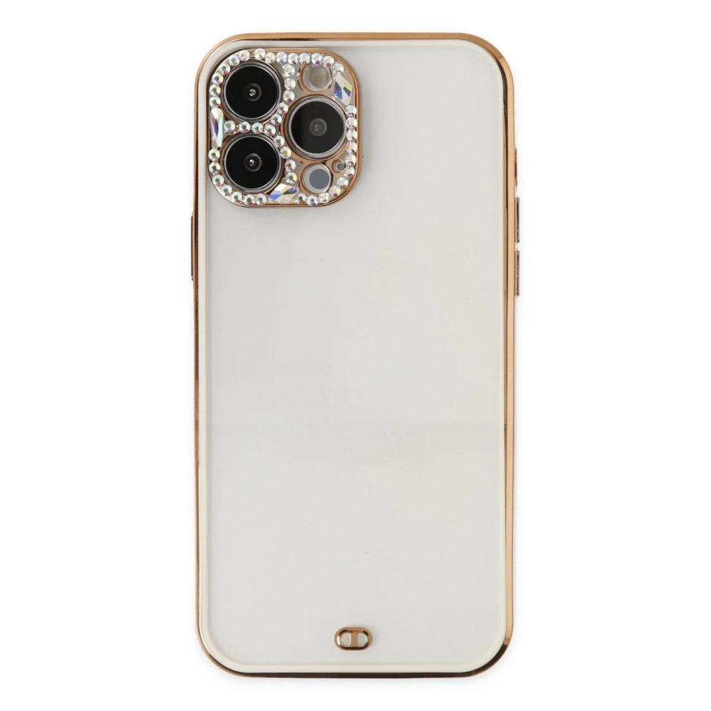 İphone 13 Pro Kılıf Liva Taşlı Silikon - Beyaz