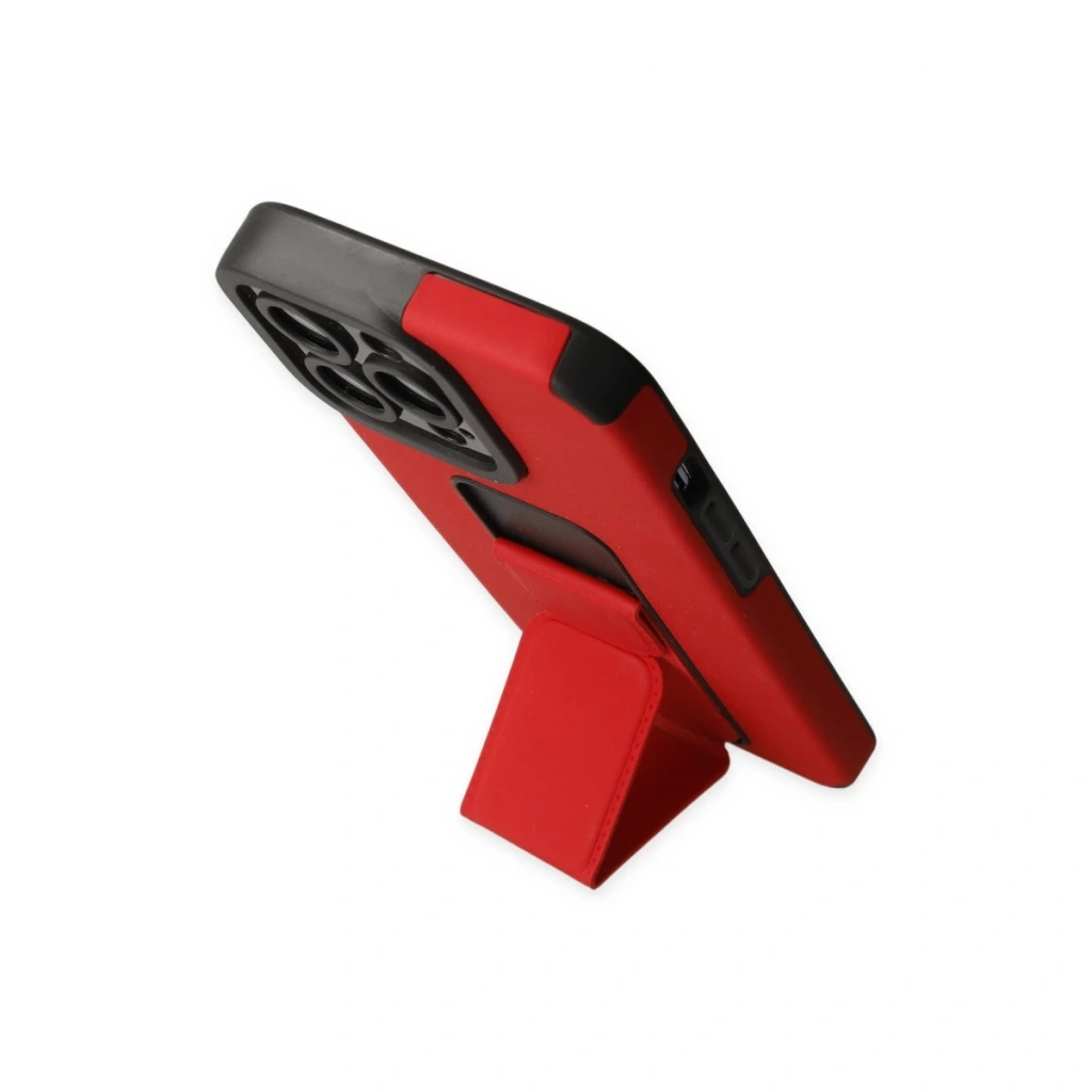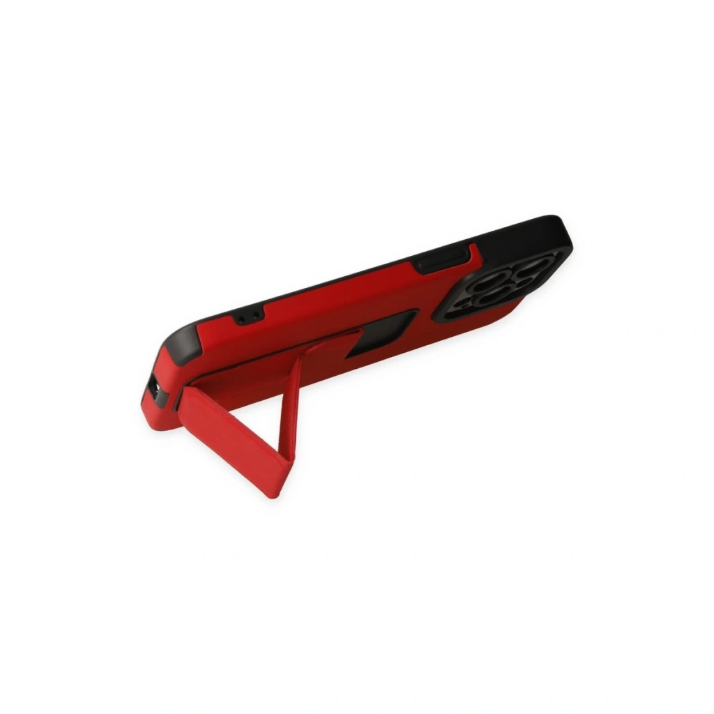 İphone 13 Pro Max Kılıf Mega Standlı Silikon - Kırmızı