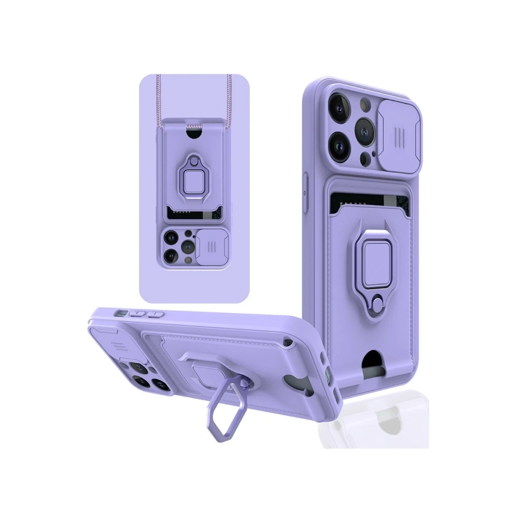 İphone 13 Pro Max Kılıf Zuma Kartvizitli Yüzüklü Silikon - Lila