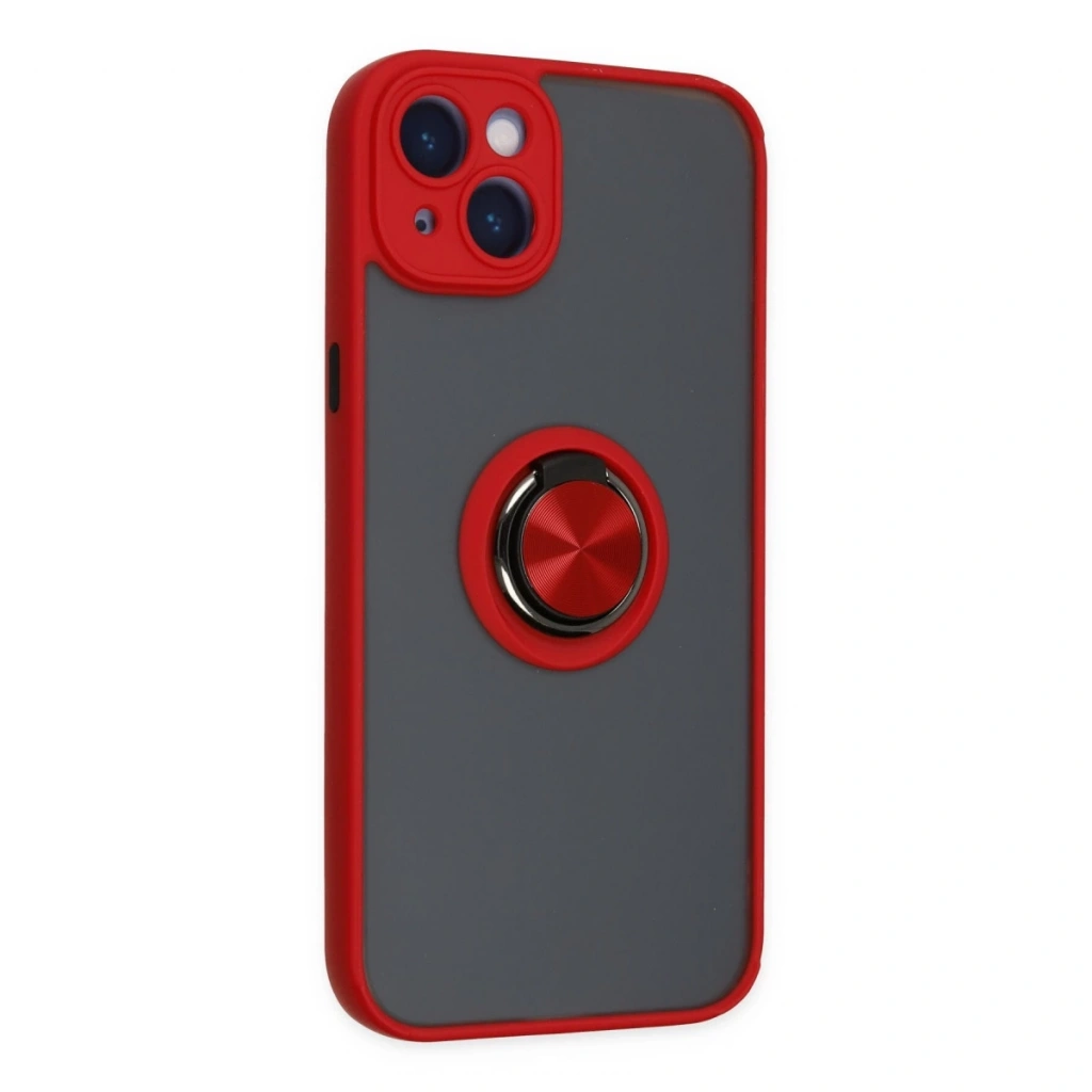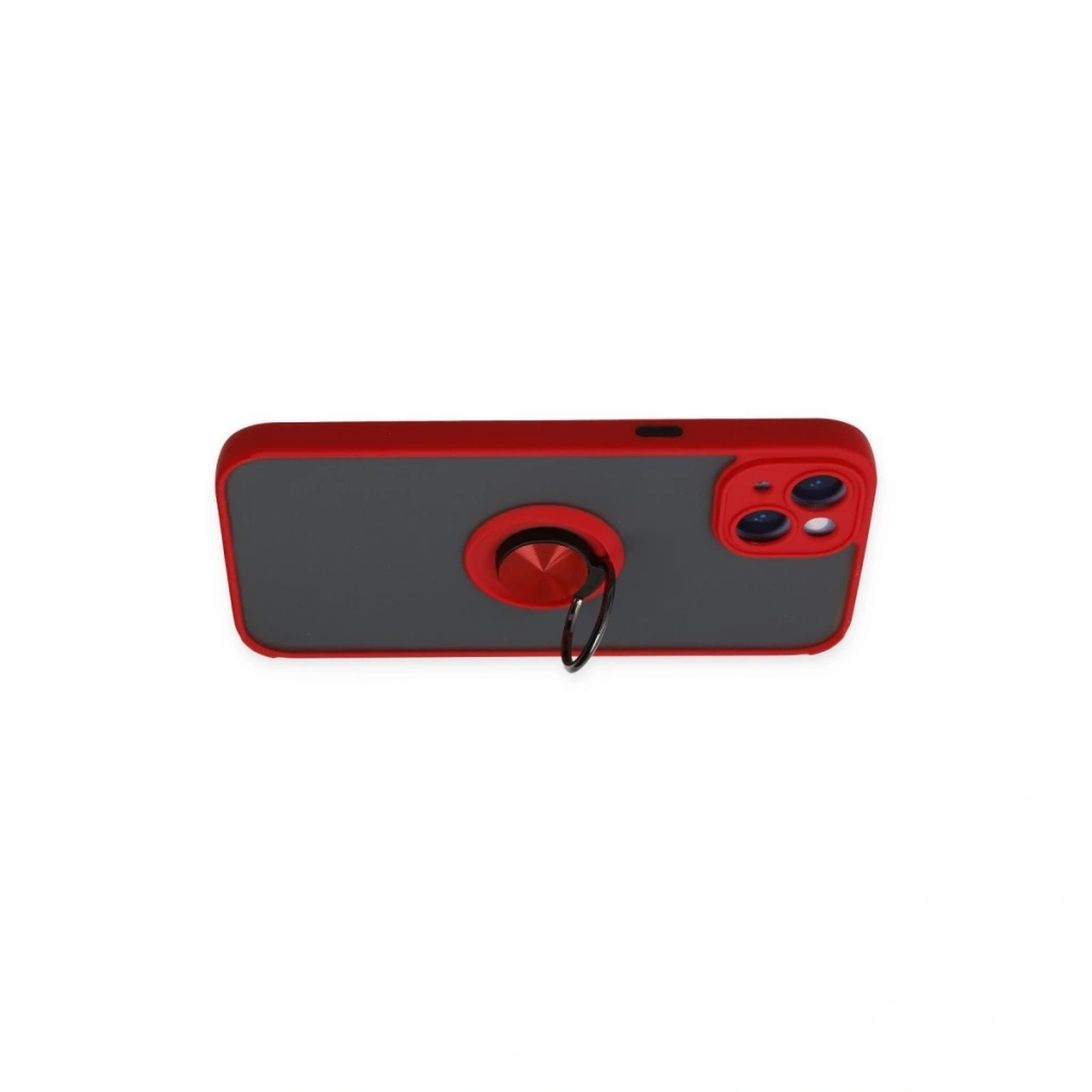 İphone 14 Kılıf Montreal Yüzüklü Silikon Kapak - Kırmızı