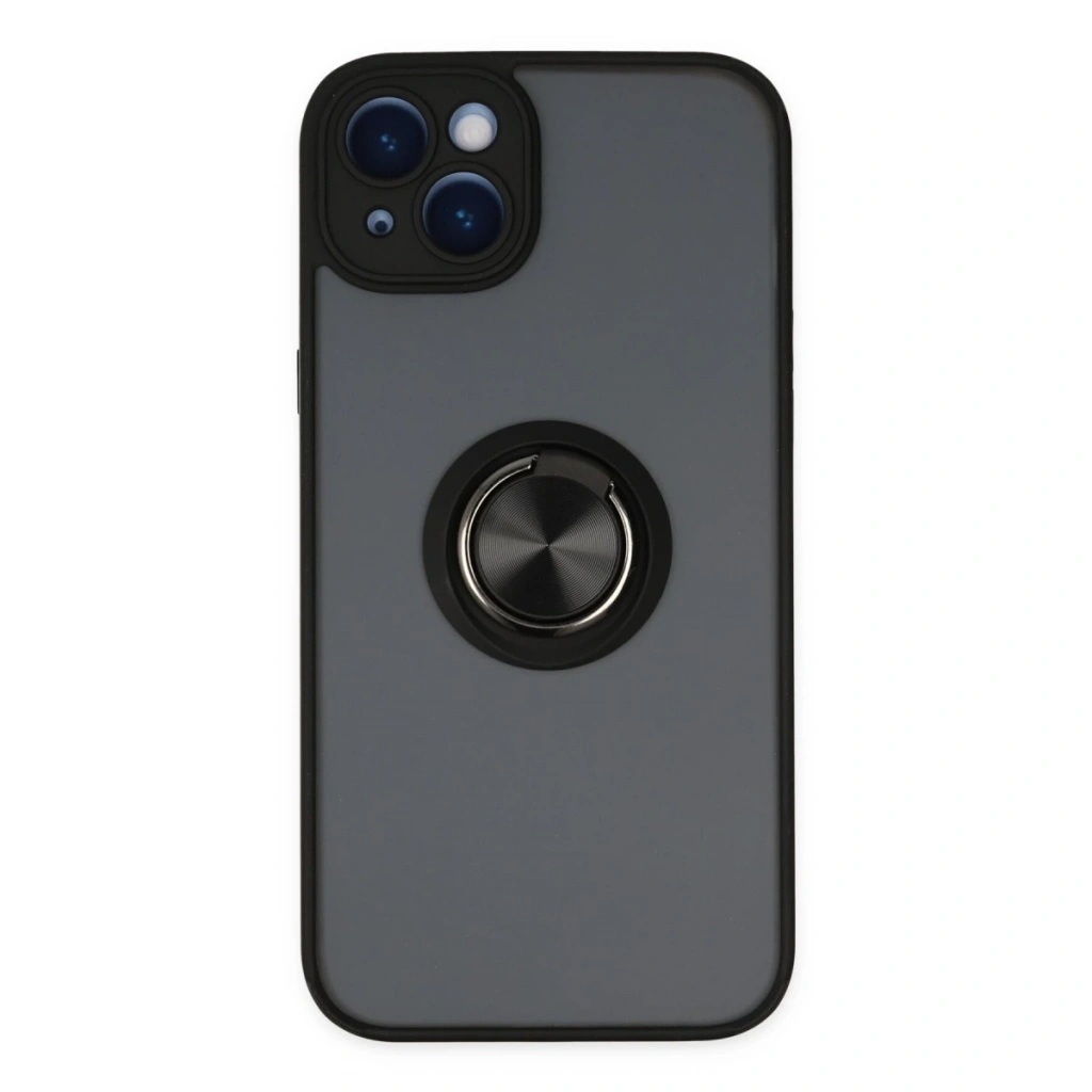 İphone 14 Kılıf Montreal Yüzüklü Silikon Kapak - Siyah