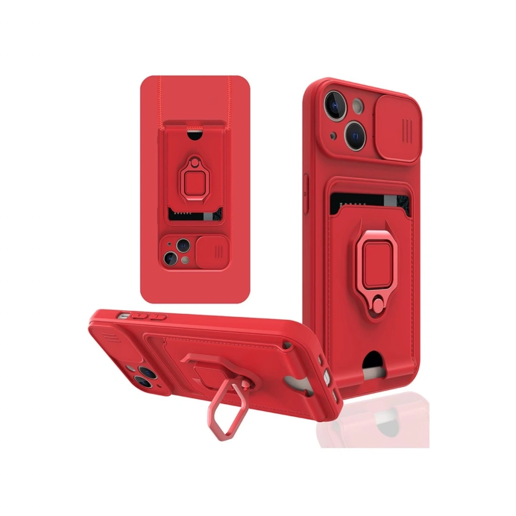 İphone 14 Plus Kılıf Zuma Kartvizitli Yüzüklü Silikon - Kırmızı