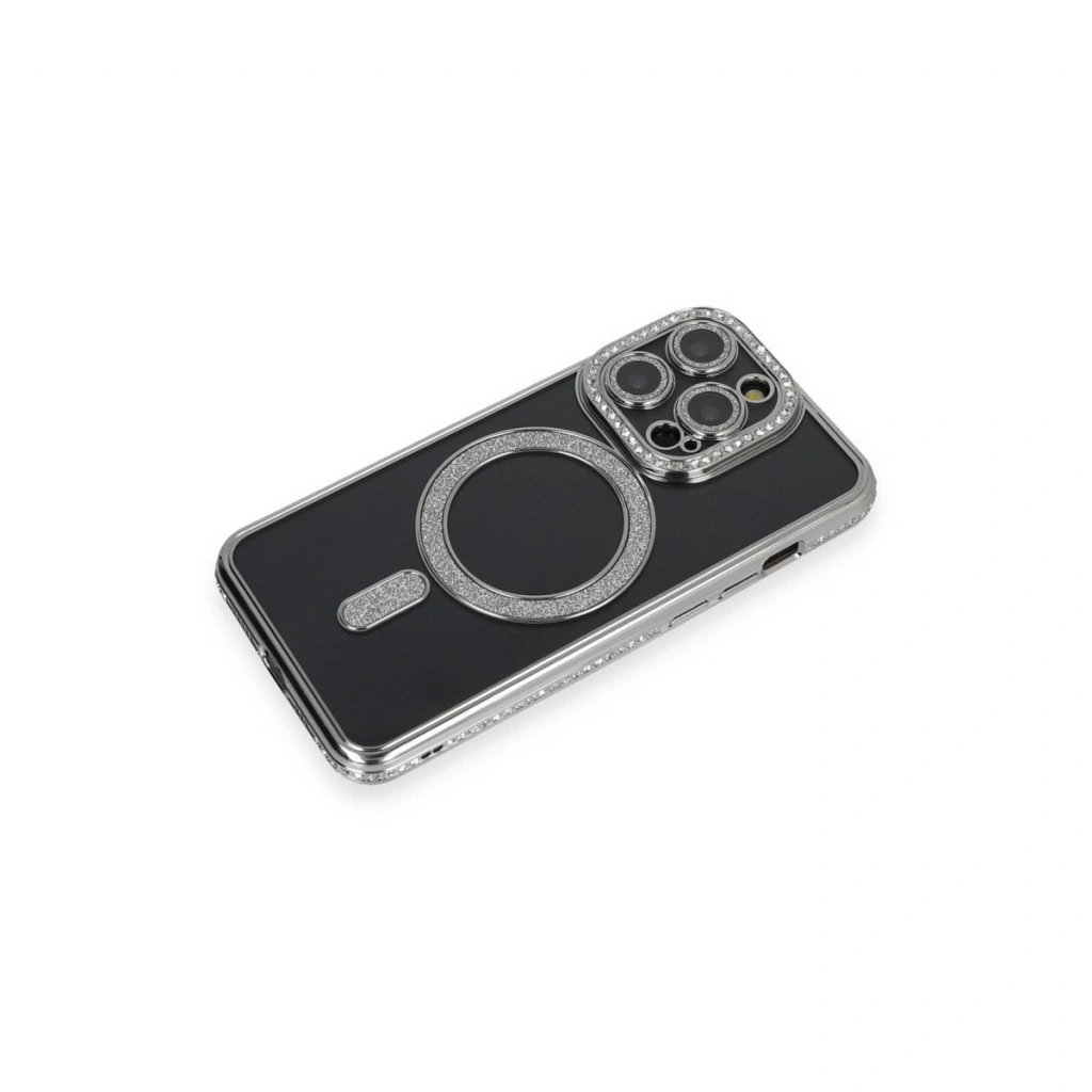 İphone 14 Pro Max Kılıf Joke Simli Magneticsafe Kılıf - Gri