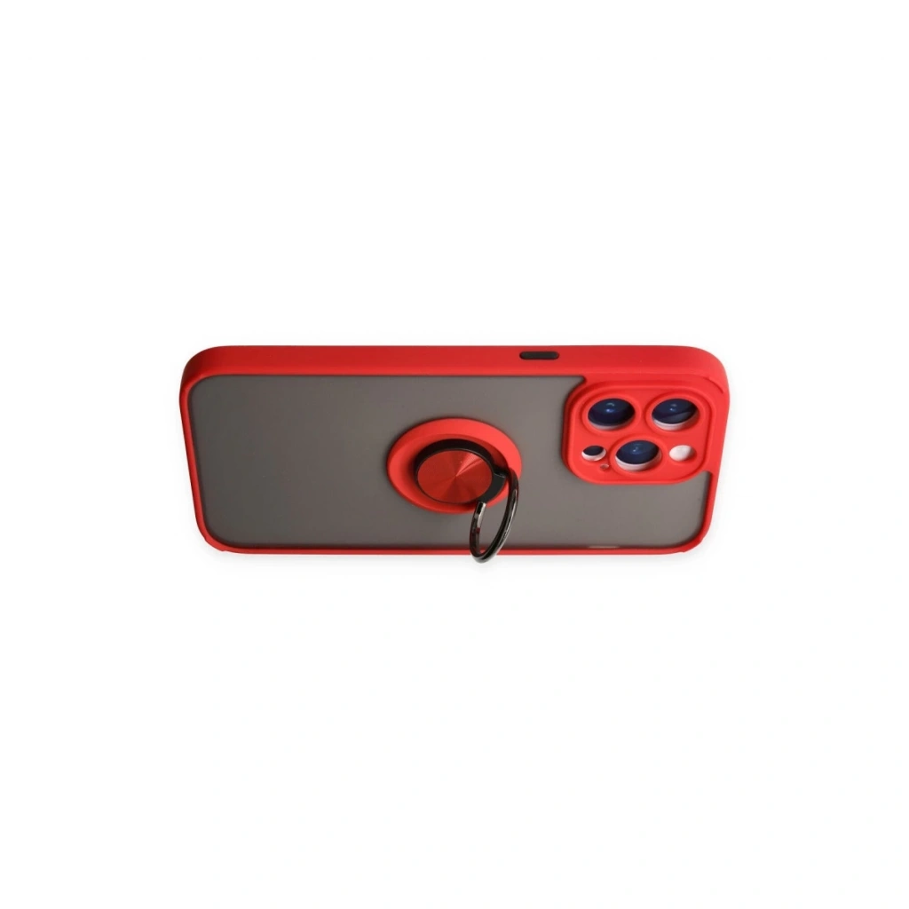 İphone 14 Pro Max Kılıf Montreal Yüzüklü Silikon Kapak - Kırmızı