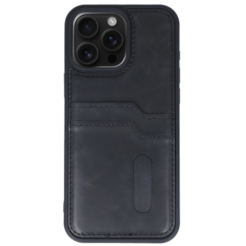 İphone 15 Pro Max Kılıf Sara Kartvizitli Deri Kılıf - Siyah