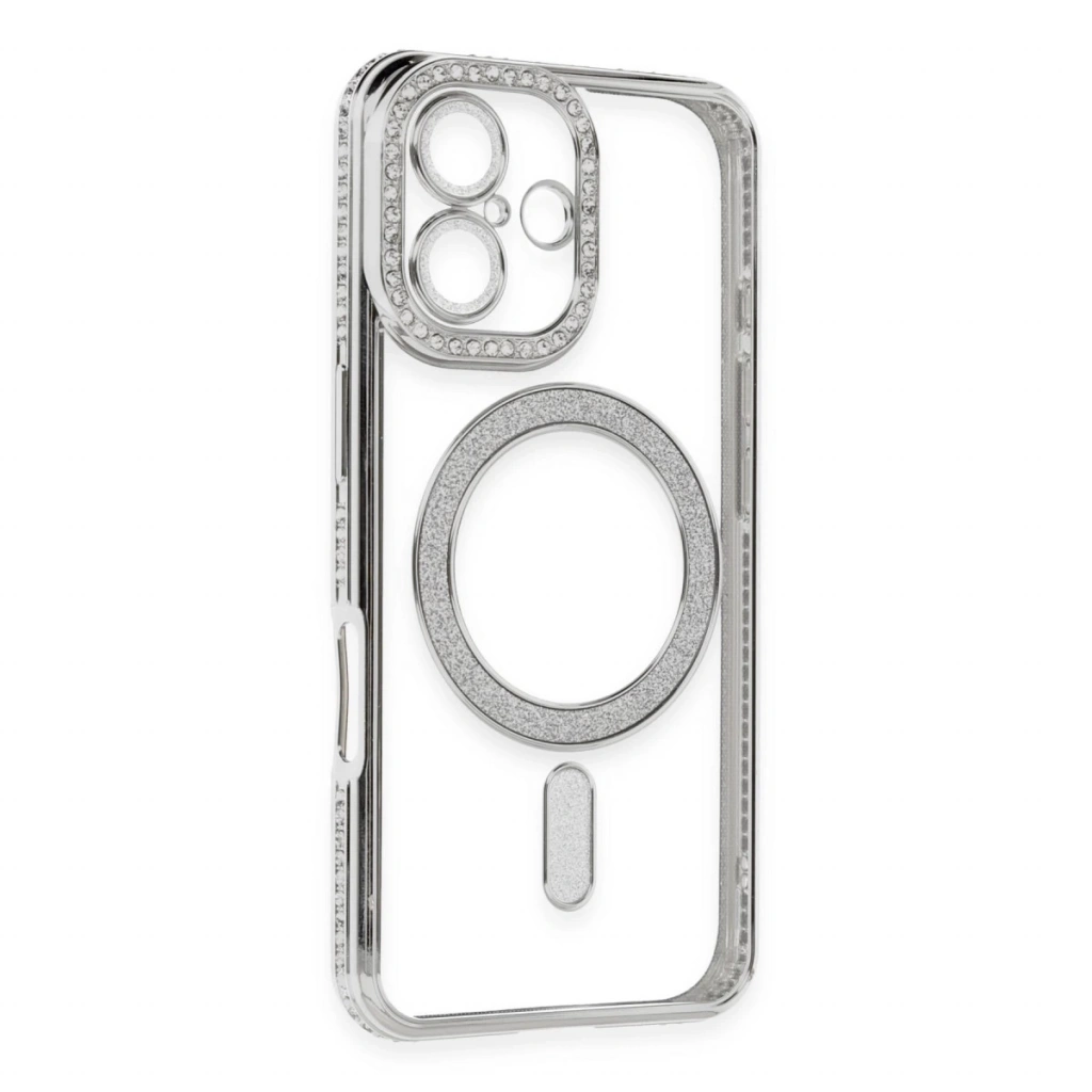 İphone 16 Kılıf Joke Simli Magneticsafe Kılıf - Gümüş