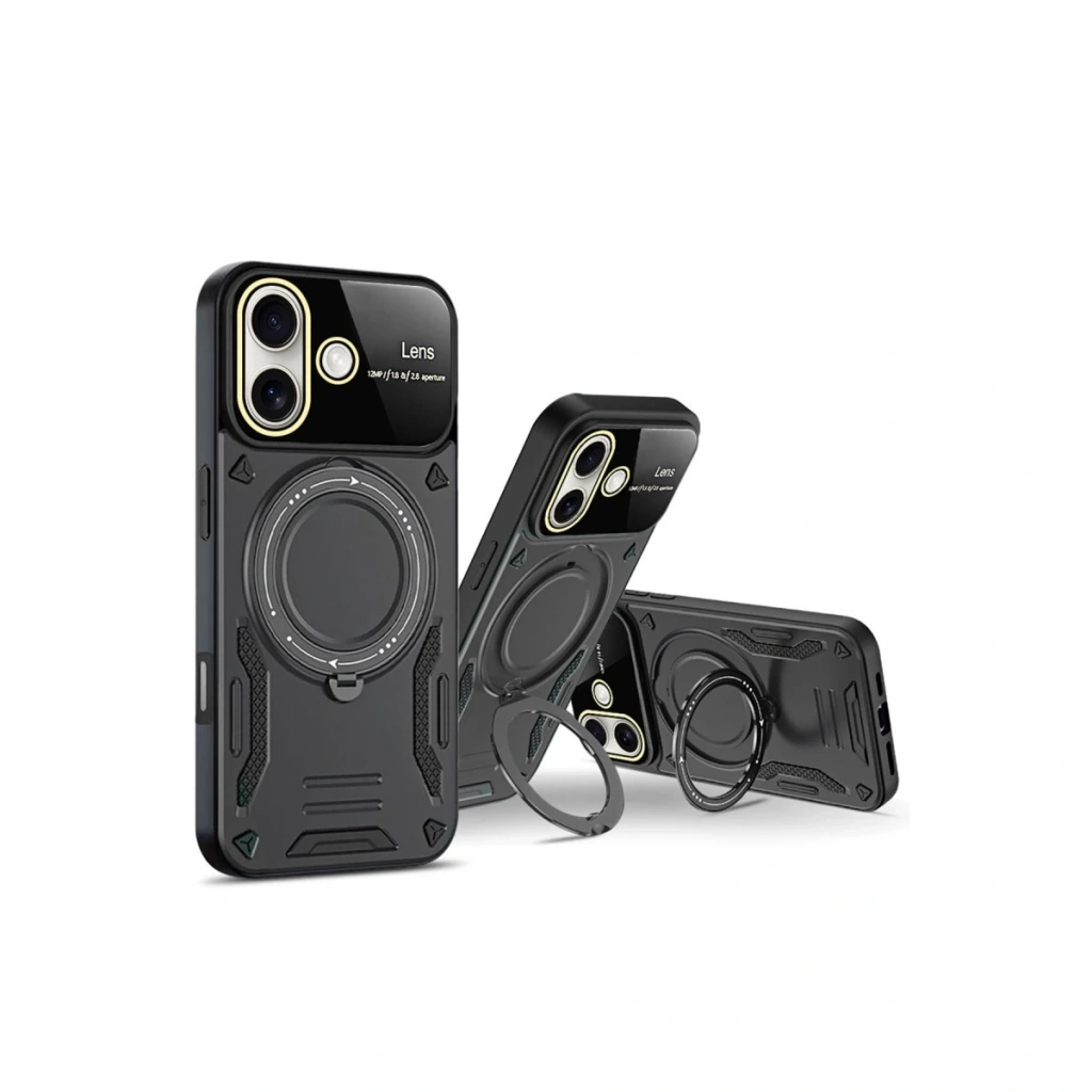 İphone 16 Kılıf Joy Lens Standlı Kapak - Koyu Yeşil