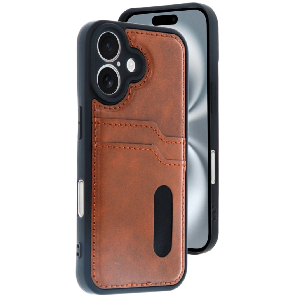 İphone 16 Kılıf Sara Kartvizitli Deri Kılıf - Taba