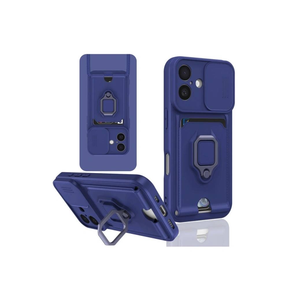 İphone 16 Kılıf Zuma Kartvizitli Yüzüklü Silikon - Lacivert