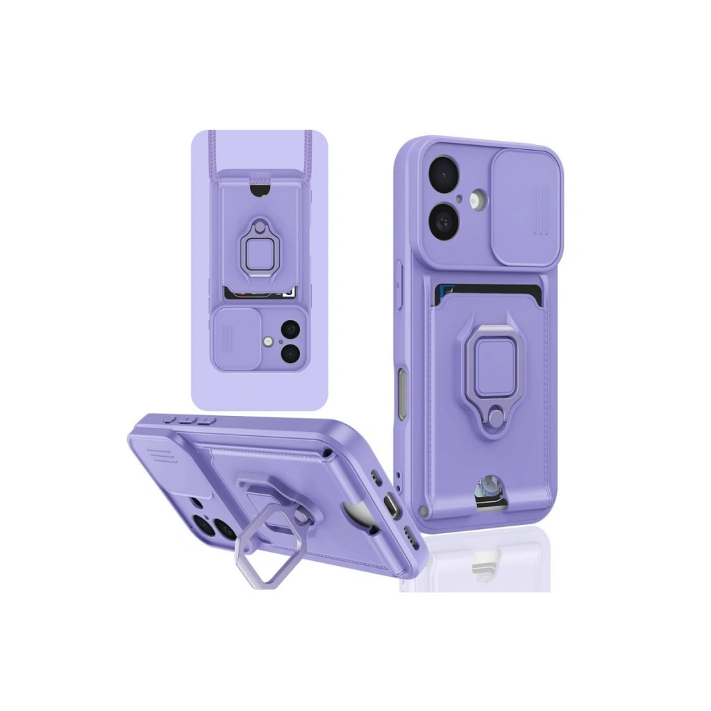 İphone 16 Kılıf Zuma Kartvizitli Yüzüklü Silikon - Lila