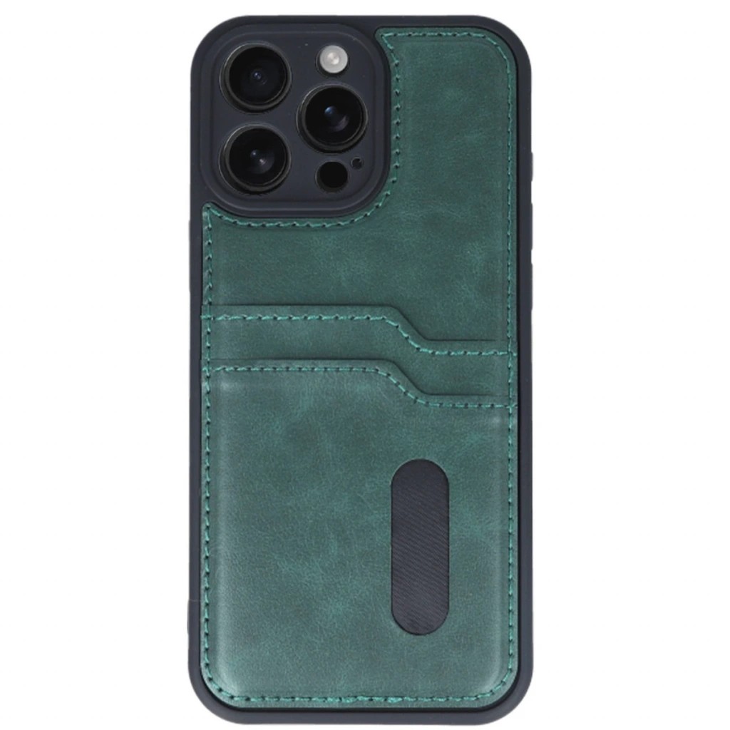 İphone 16 Pro Max Kılıf Sara Kartvizitli Deri Kılıf - Koyu Yeşil