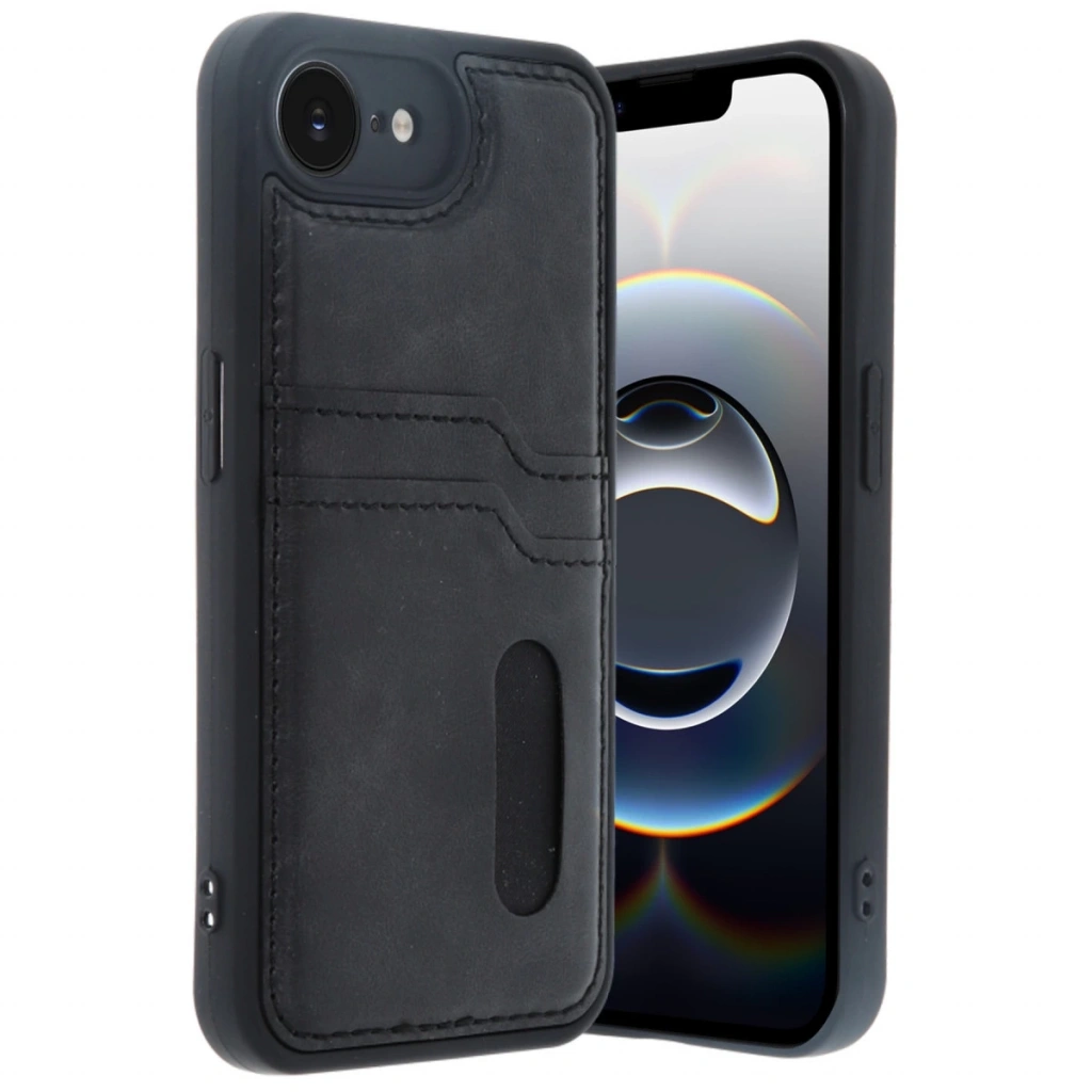 İphone 16e Kılıf Sara Kartvizitli Deri Kılıf - Siyah