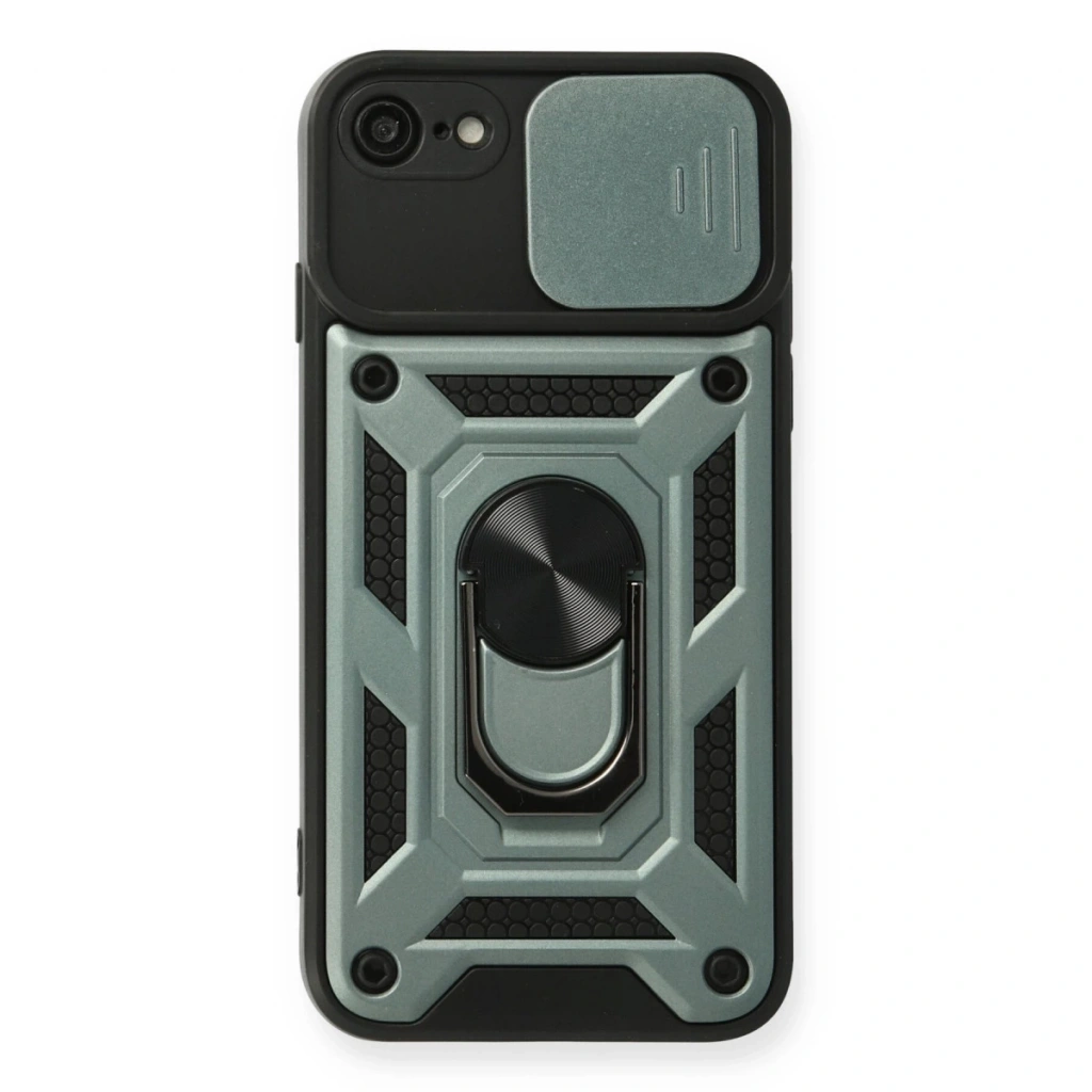 İphone 7 Kılıf Pars Lens Yüzüklü Silikon - Yeşil