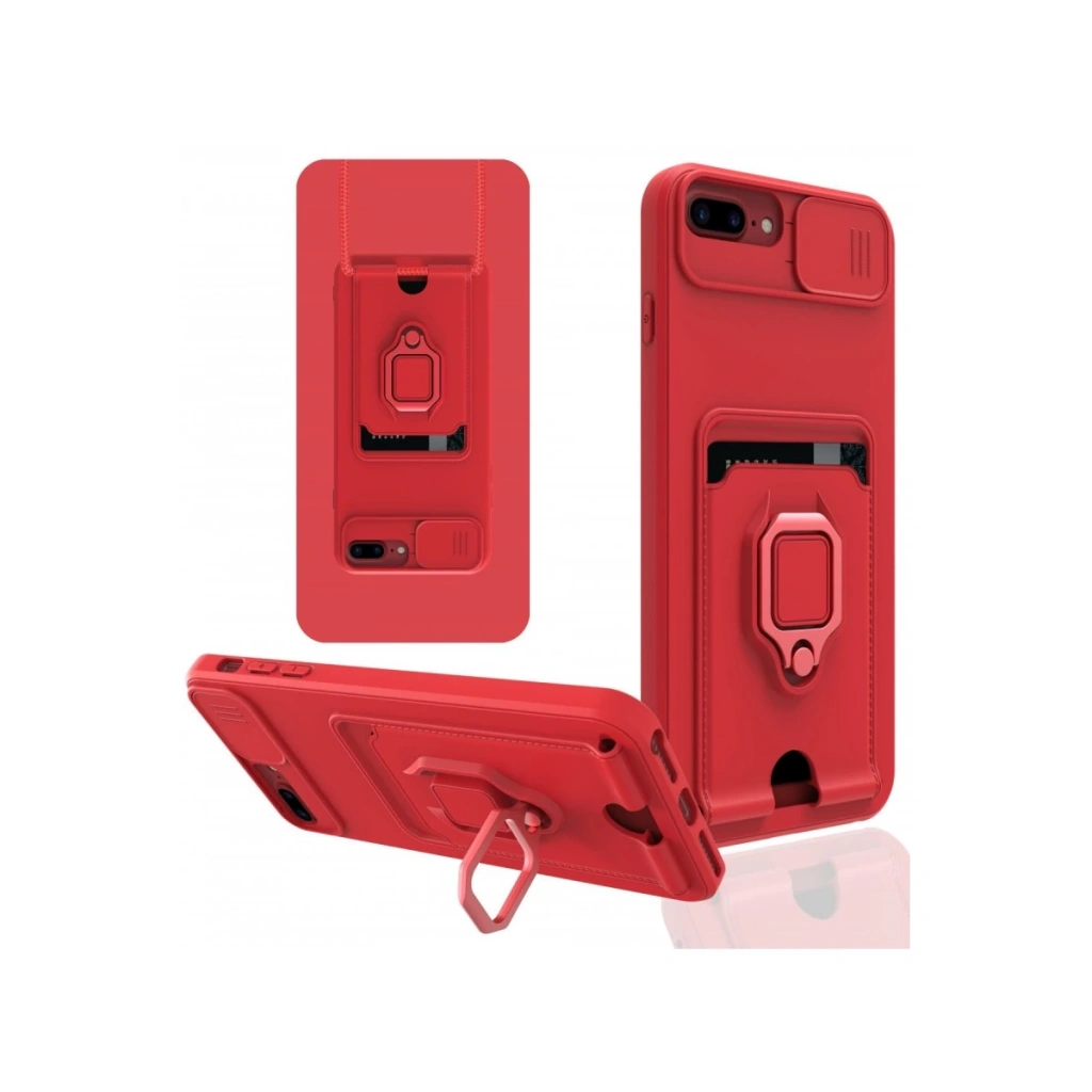 İphone 7 Plus Kılıf Zuma Kartvizitli Yüzüklü Silikon - Kırmızı