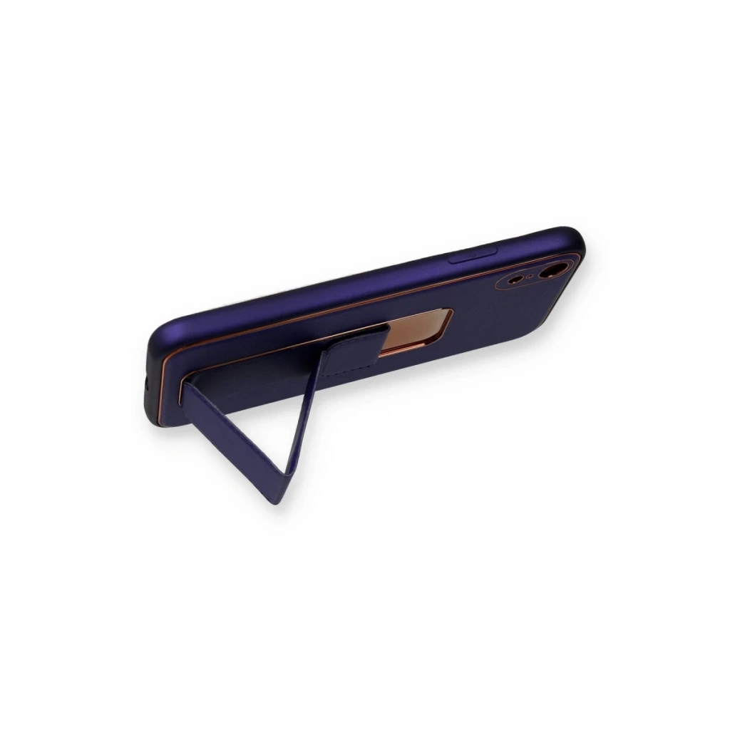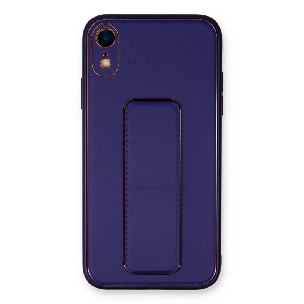 İphone Xr Kılıf Coco Deri Standlı Kapak - Mor