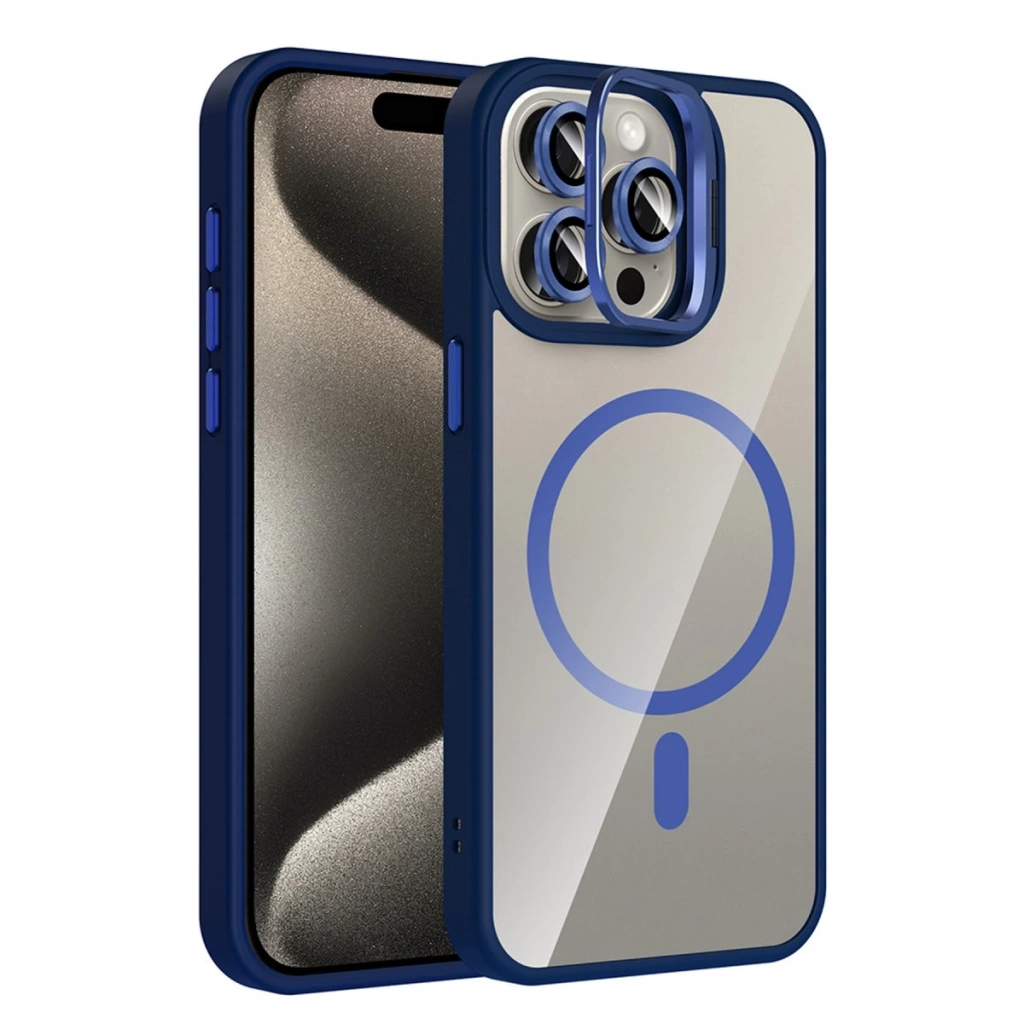 Joko Apple İphone 15 Pro Max Remim Lensli Magsafe Standlı Kapak - Lacivert