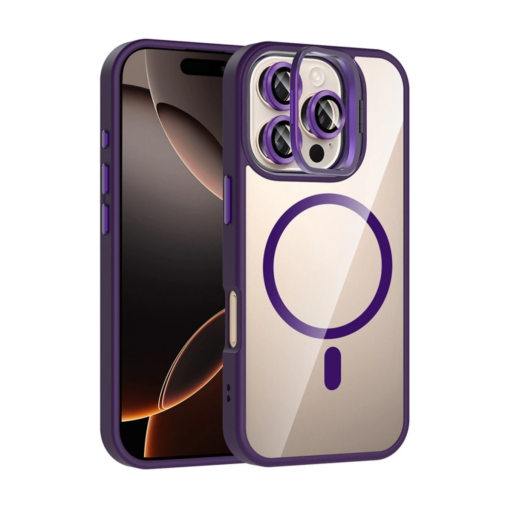 Joko Apple İphone 16 Pro Max Remim Lensli Magsafe Standlı Kapak - Derin Mor