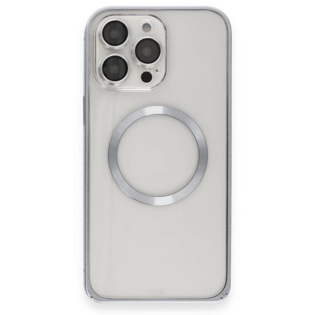 Joko İphone 15 Pro Max Kılıf Metal Bumper Magneticsafe Kapak - Gri