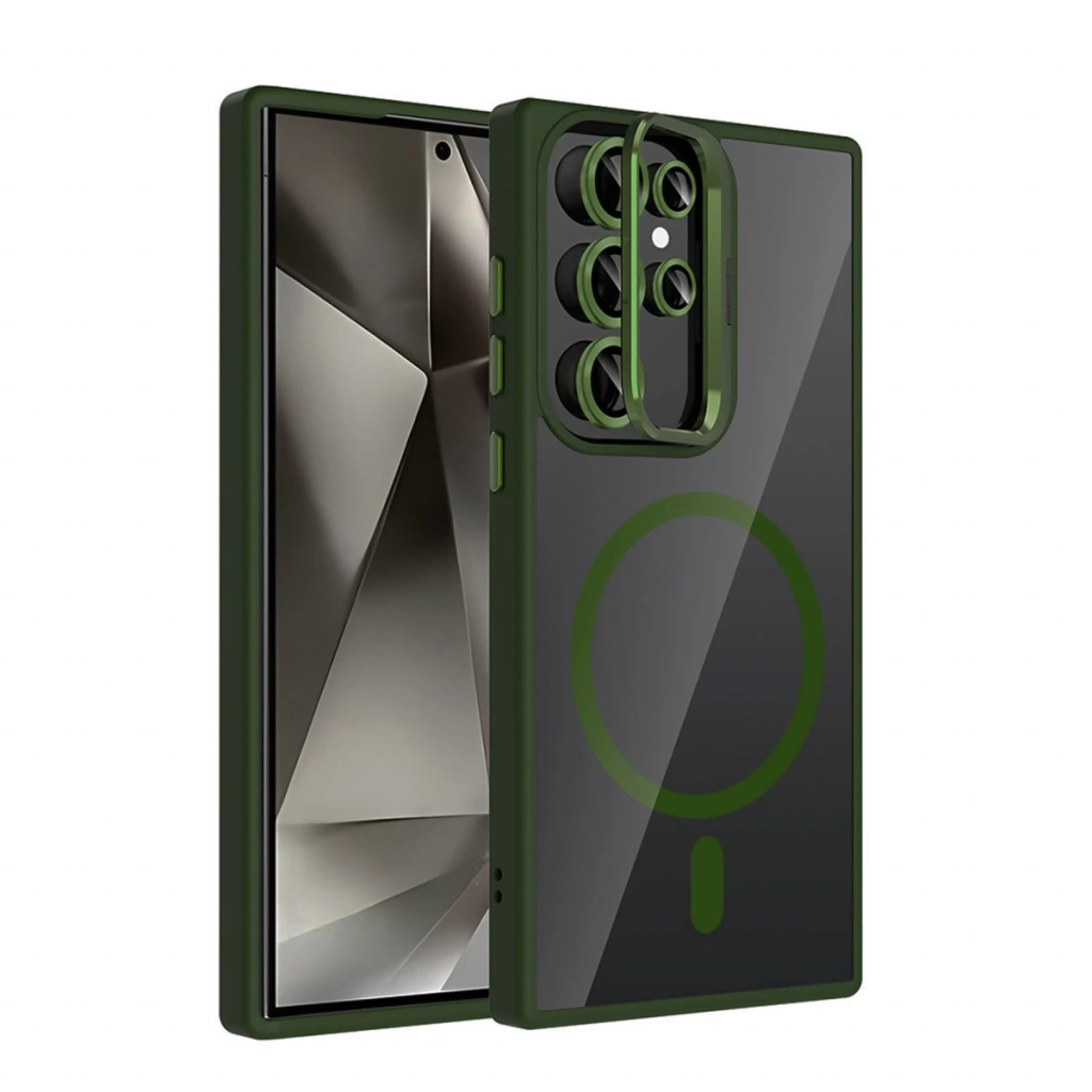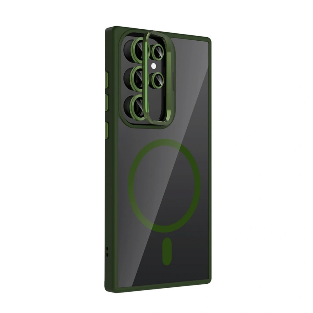 Joko Samsung Galaxy S23 Ultra Remim Lensli Magsafe Standlı Kapak - Koyu Yeşil