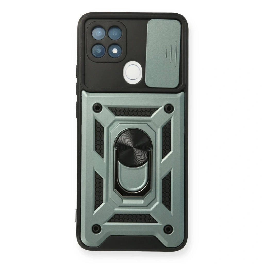 Oppo A15 Kılıf Pars Lens Yüzüklü Silikon - Yeşil