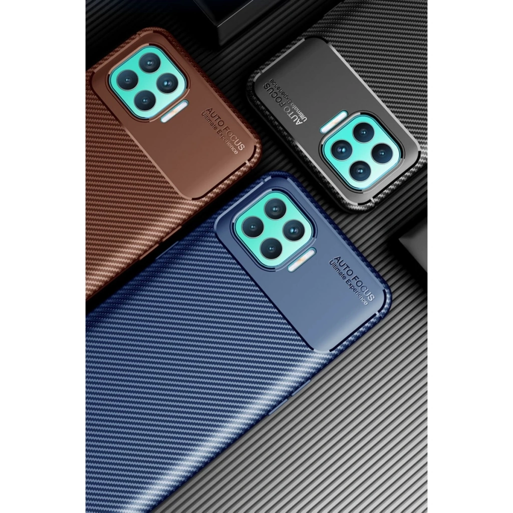 Oppo Reno 4 Lite Kılıf Auto Focus Karbon Kapak - Kahverengi