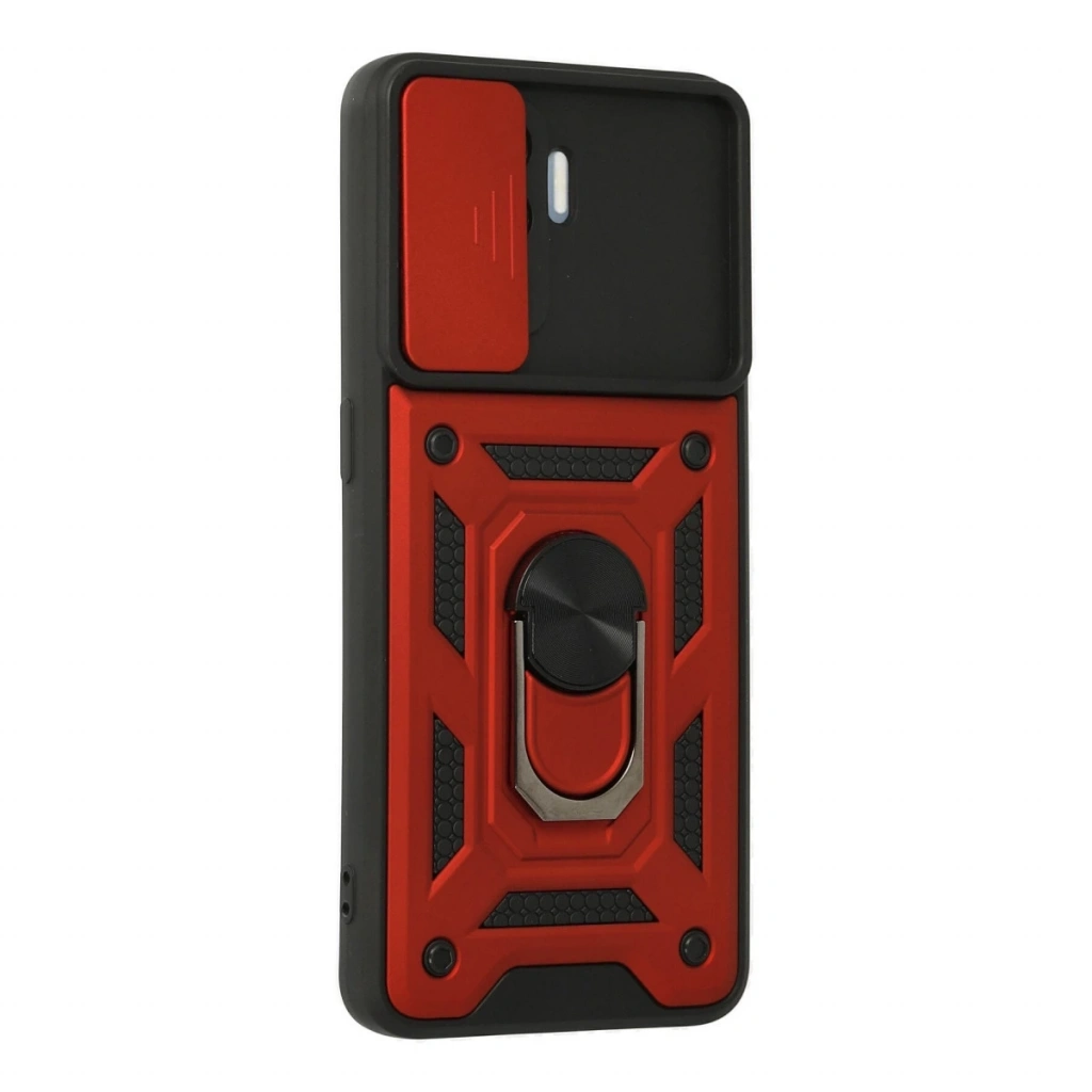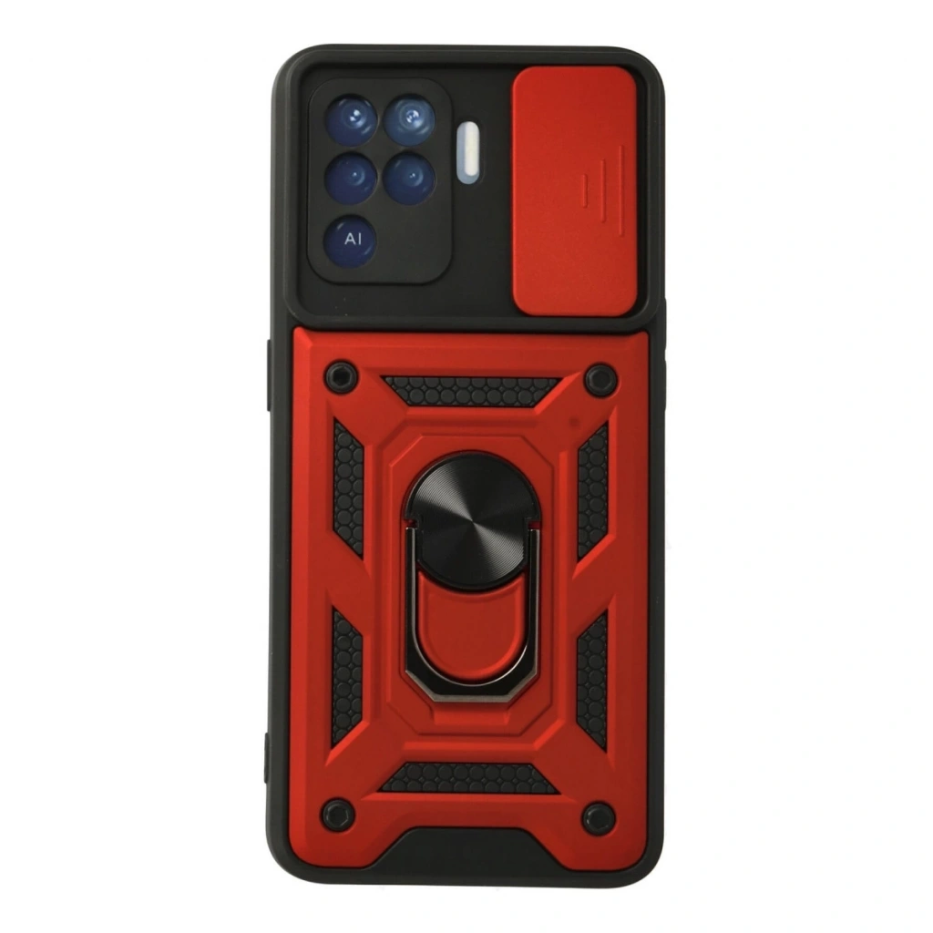 Oppo Reno 5 Lite Kılıf Pars Lens Yüzüklü Silikon - Kırmızı