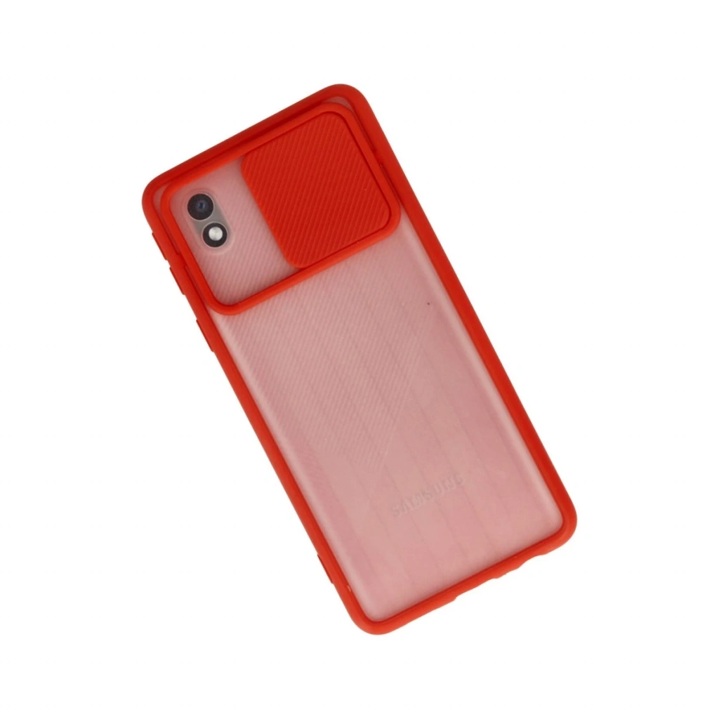 Samsung Galaxy A01 Core Kılıf Palm Buzlu Kamera Sürgülü Silikon - Kırmızı
