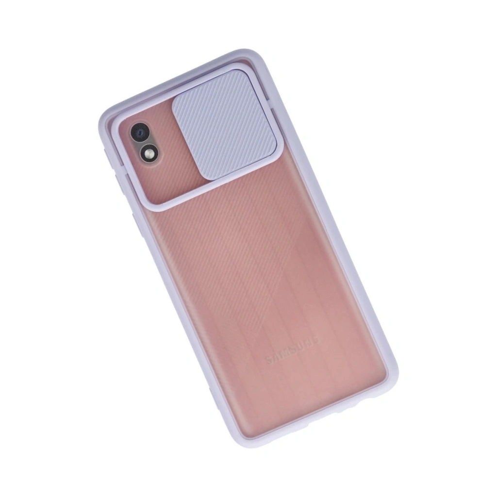 Samsung Galaxy A01 Core Kılıf Palm Buzlu Kamera Sürgülü Silikon - Lila