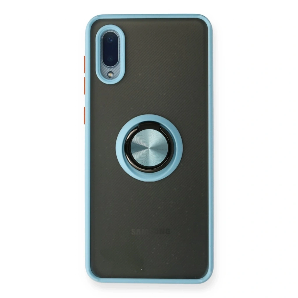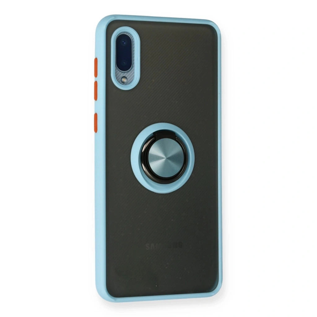 Samsung Galaxy A02 Kılıf Montreal Yüzüklü Silikon Kapak - Buz Mavi