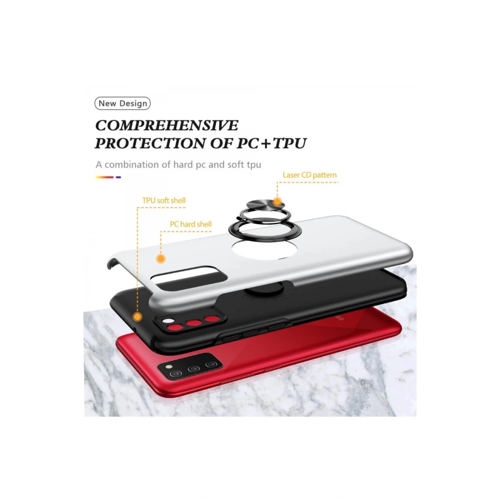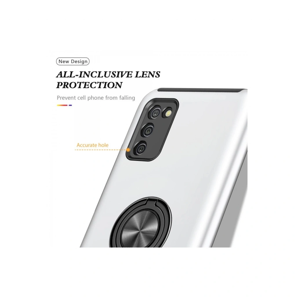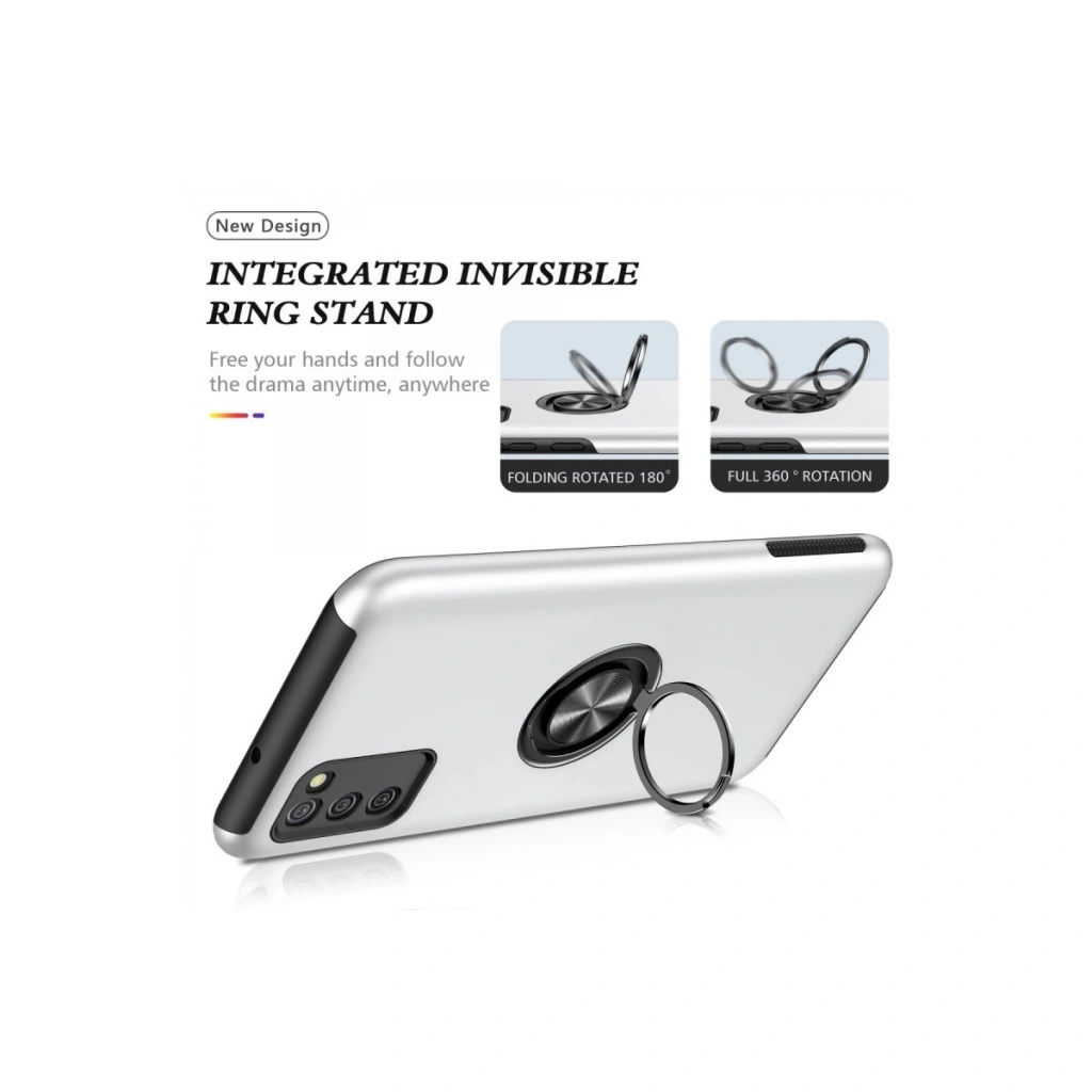Samsung Galaxy A02s Kılıf Elit Yüzüklü Kapak - Gümüş