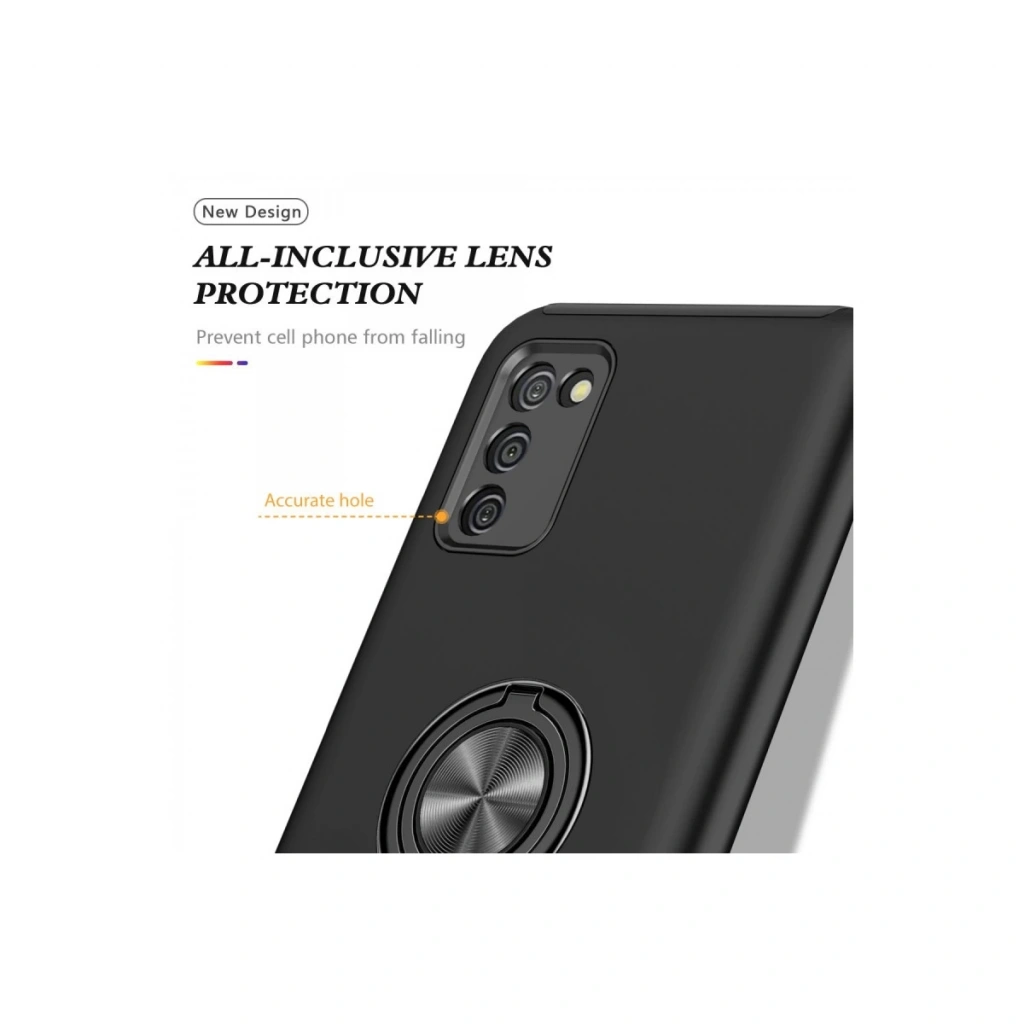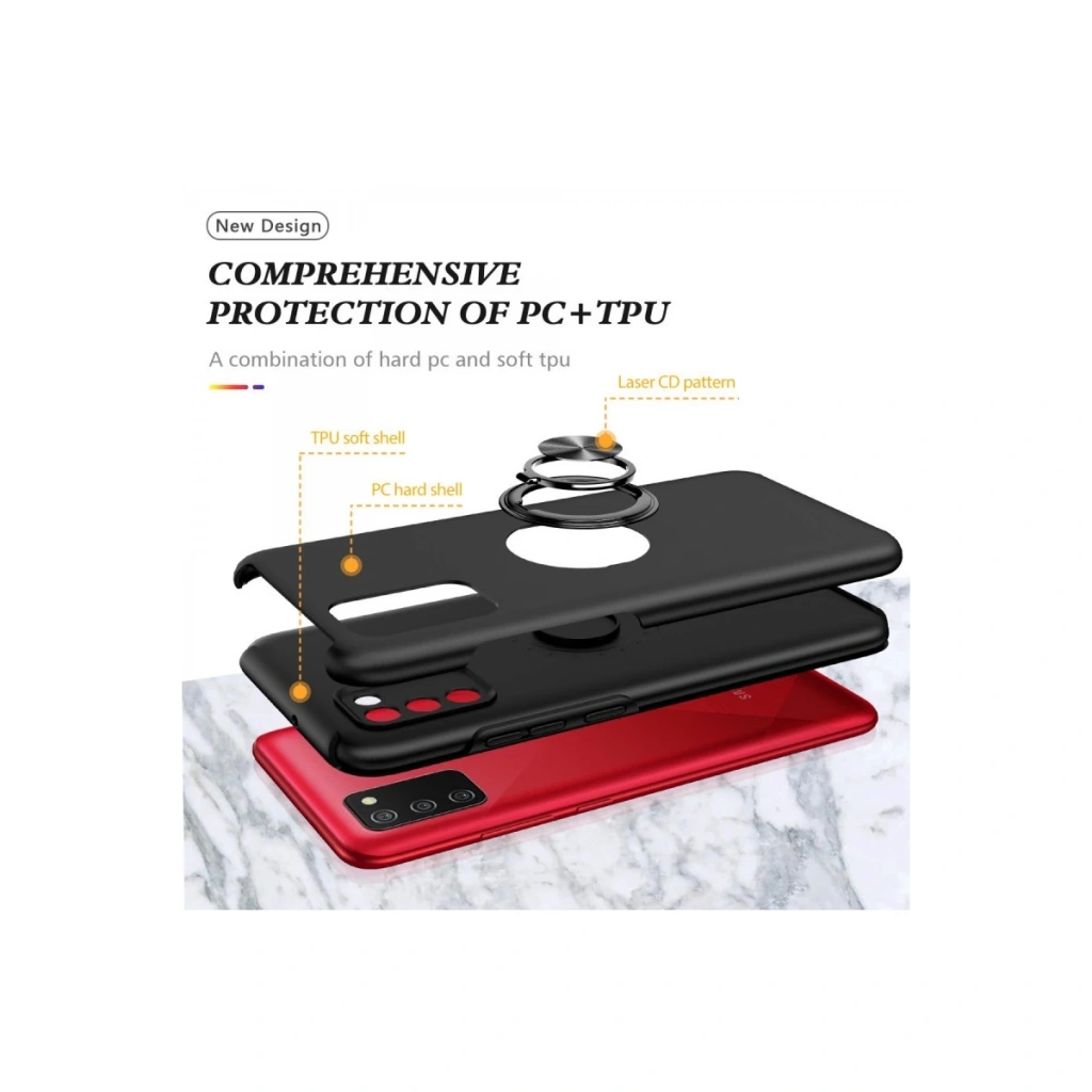 Samsung Galaxy A02s Kılıf Elit Yüzüklü Kapak - Siyah