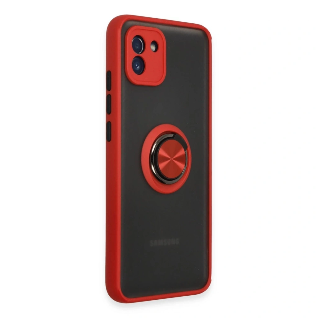 Samsung Galaxy A03 Kılıf Montreal Yüzüklü Silikon Kapak - Kırmızı
