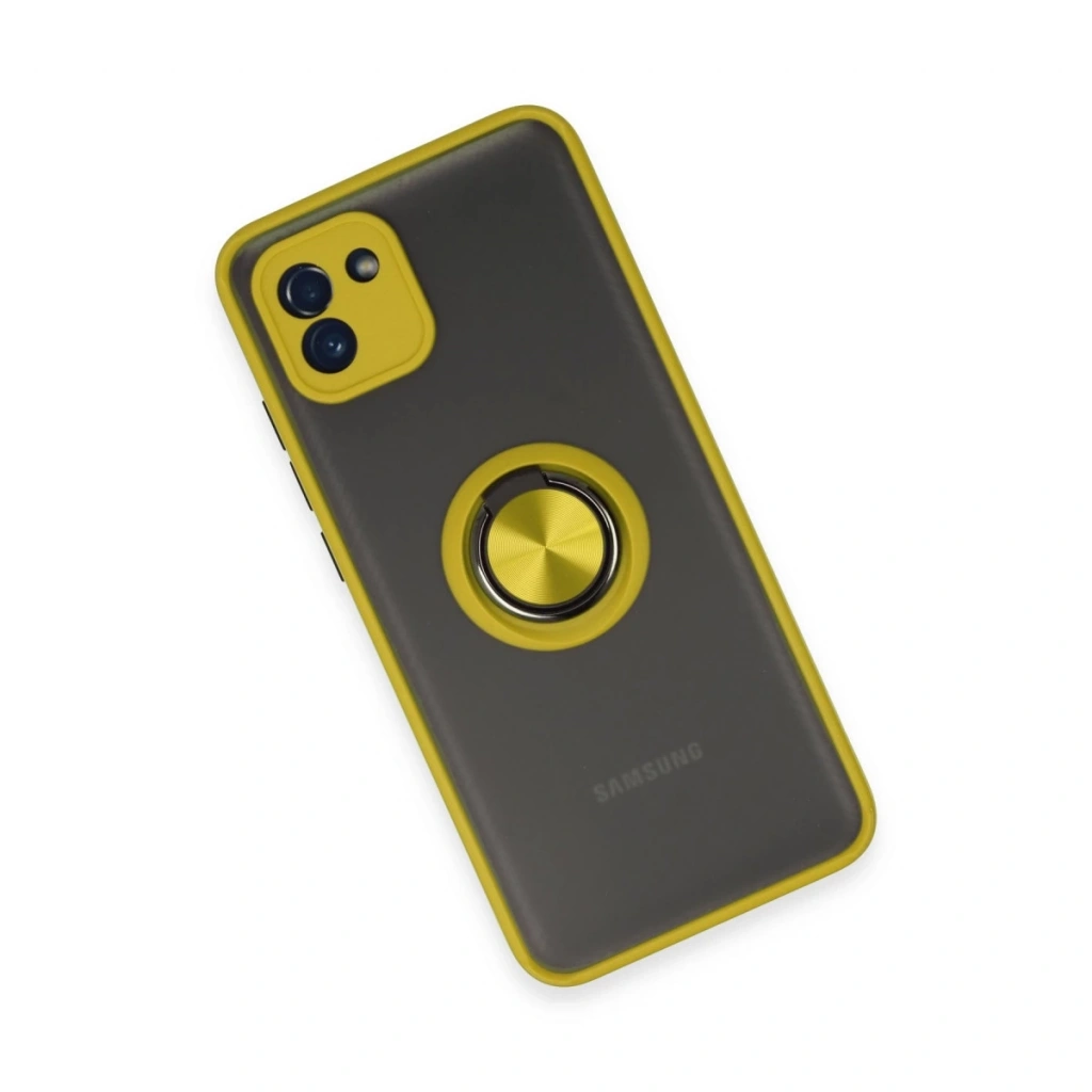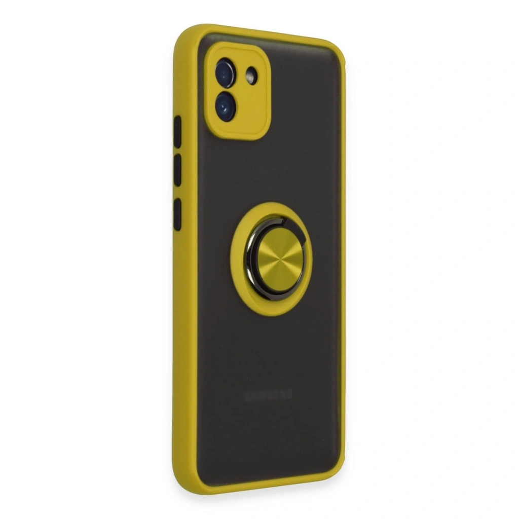 Samsung Galaxy A03 Kılıf Montreal Yüzüklü Silikon Kapak - Sarı