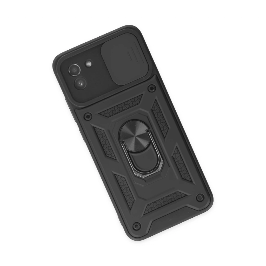 Samsung Galaxy A03 Kılıf Pars Lens Yüzüklü Silikon - Siyah