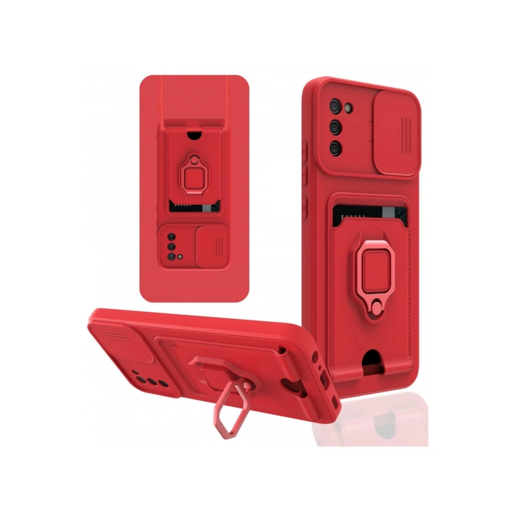 Samsung Galaxy A03s Kılıf Zuma Kartvizitli Yüzüklü Silikon - Kırmızı