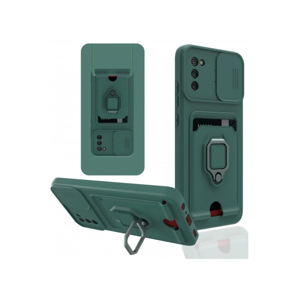 Samsung Galaxy A03s Kılıf Zuma Kartvizitli Yüzüklü Silikon - Yeşil