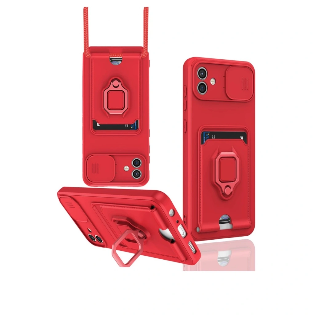 Samsung Galaxy A05 Kılıf Zuma Kartvizitli Yüzüklü Silikon - Kırmızı